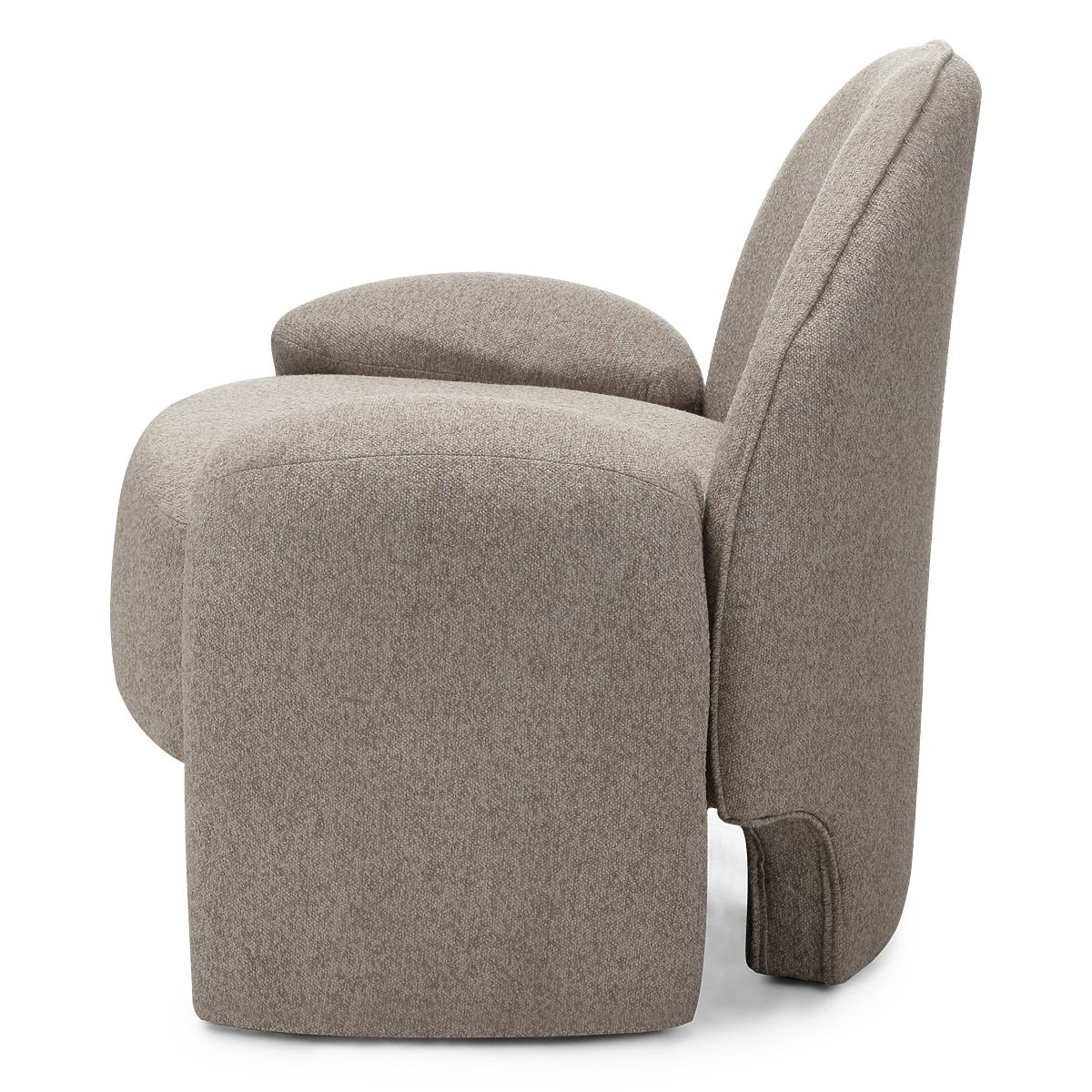 Tapecirani naslonjač Sheli s oblim oblicima i boucle tkaninom. .. više