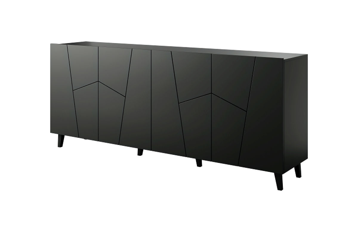 Komoda s mat crnim laminiranim frontovima i plastičnim nogama. .. više