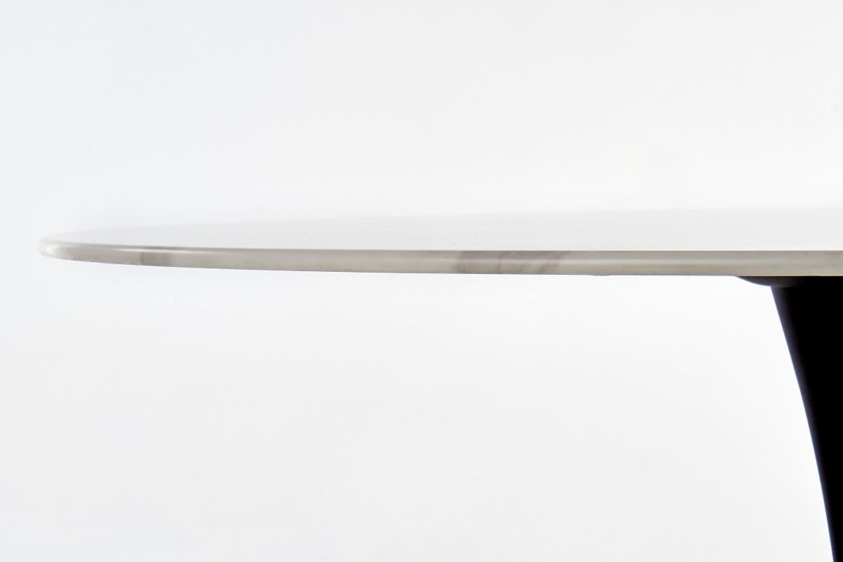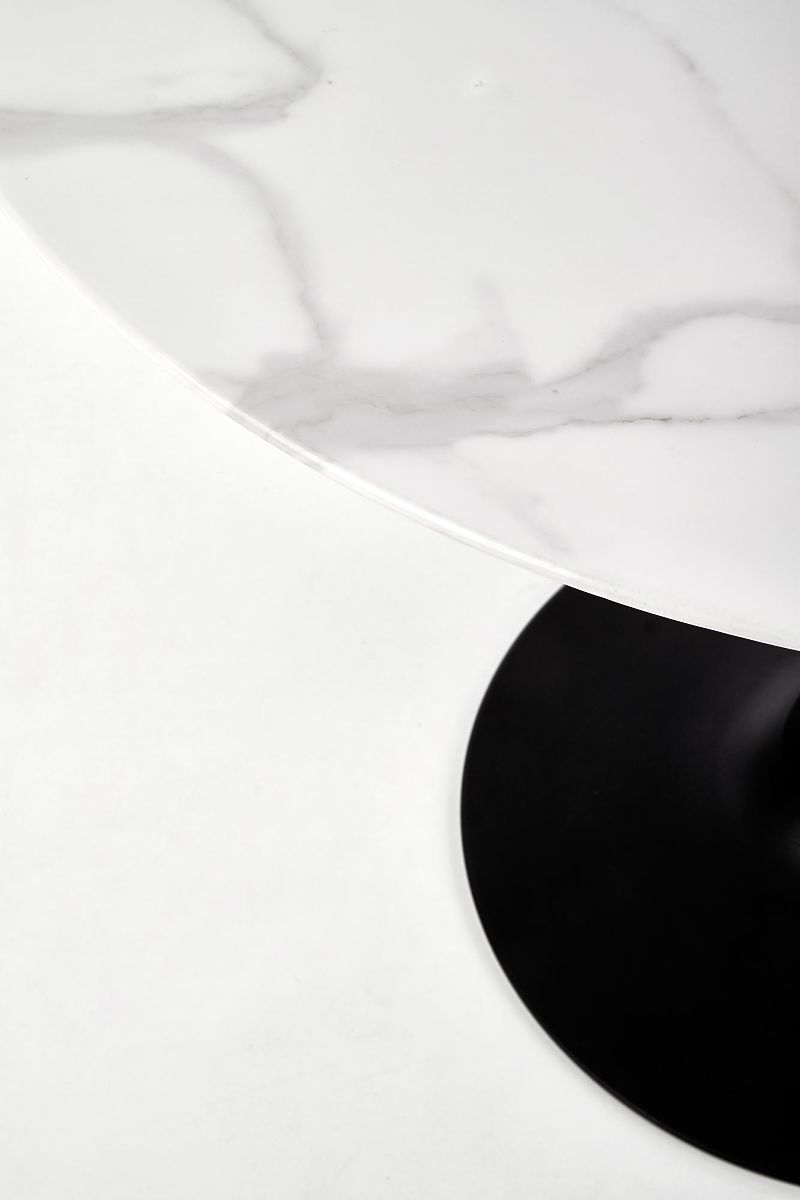 Okrugli stol od stakla s crnim nogama i bijelom mramornom pločom. .. više
