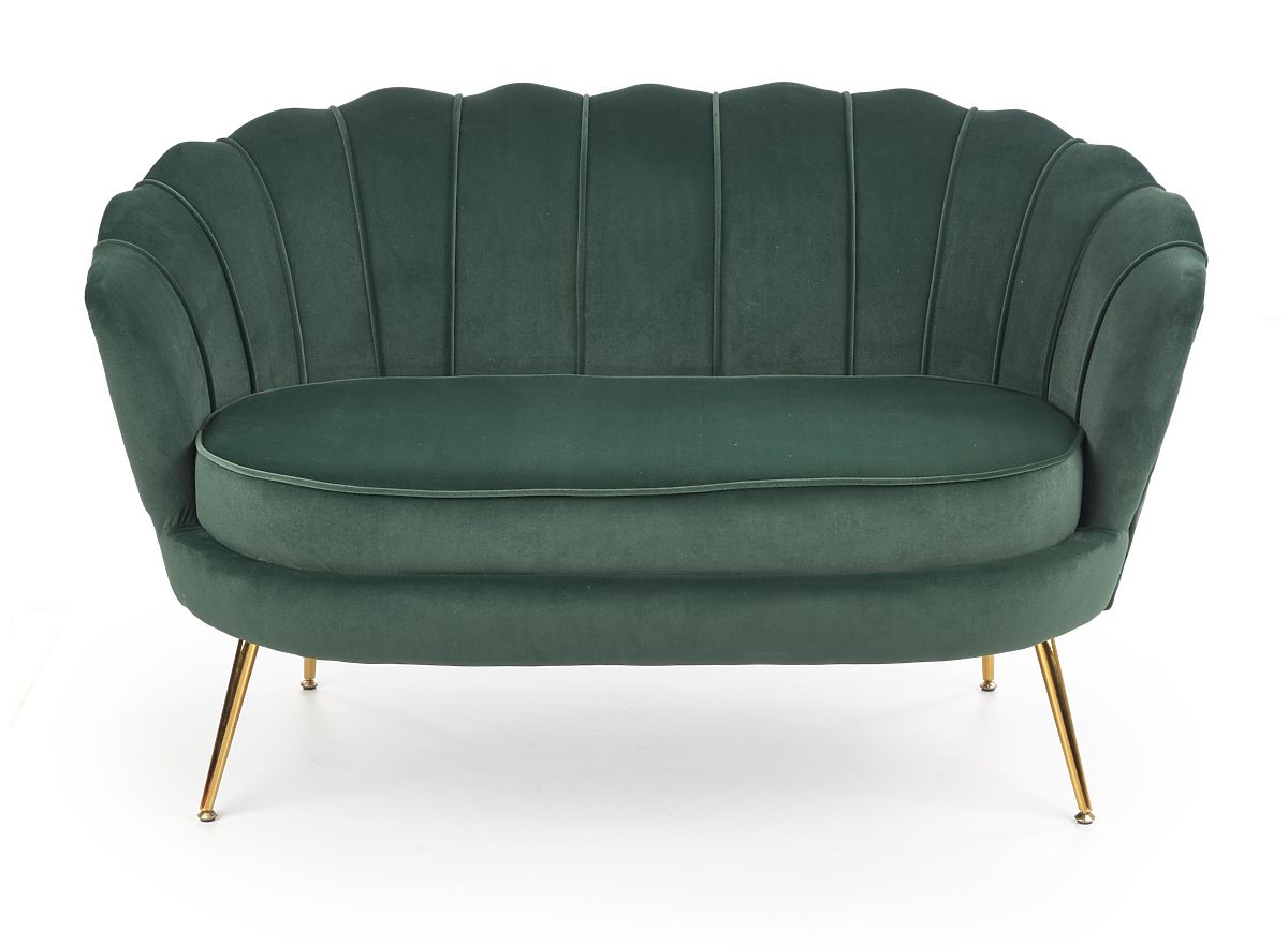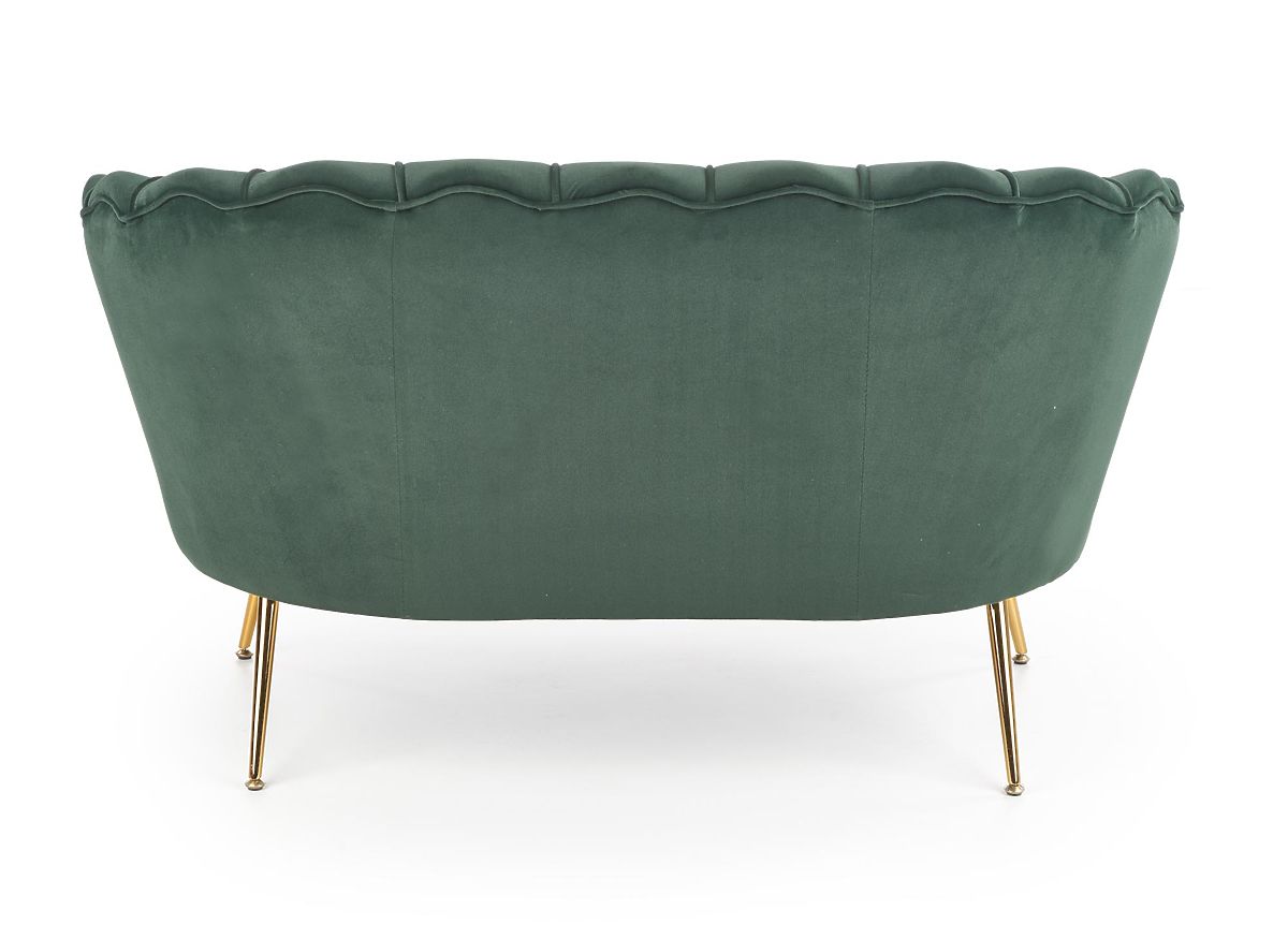 Relaksirajuća fotelja s tamno zelenom presvlakom i zlatnim nogama. .. više