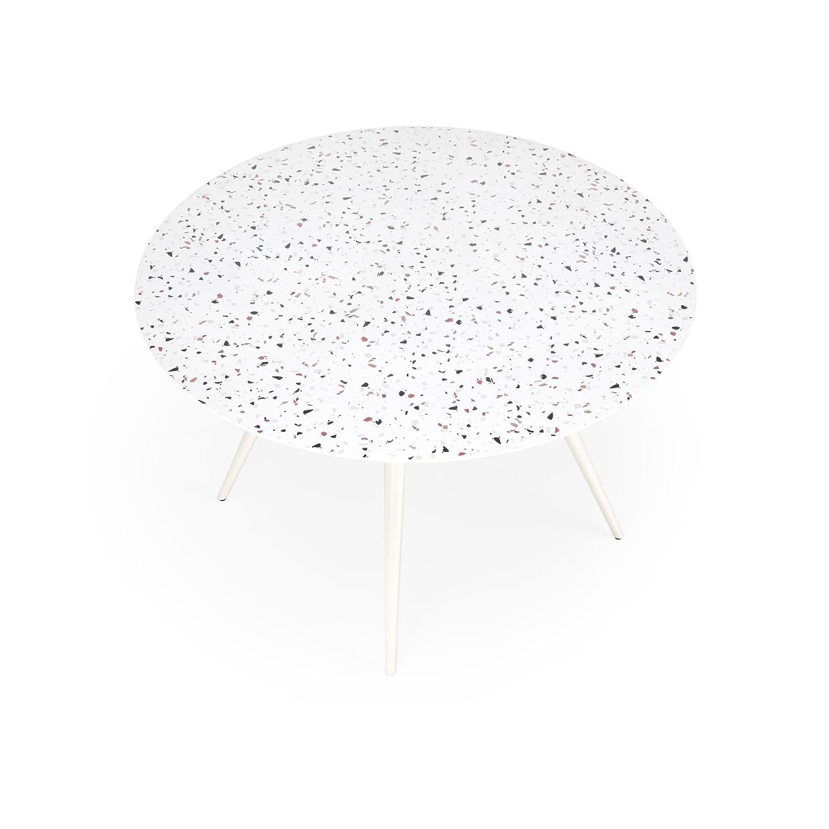 Stol ARAMIS s terazzo pločom i bijelim nogama. .. više