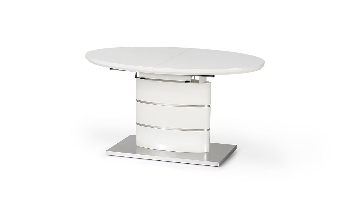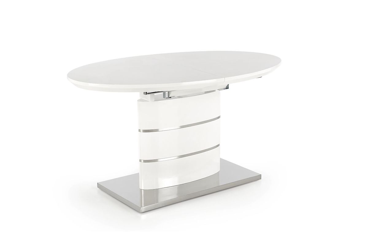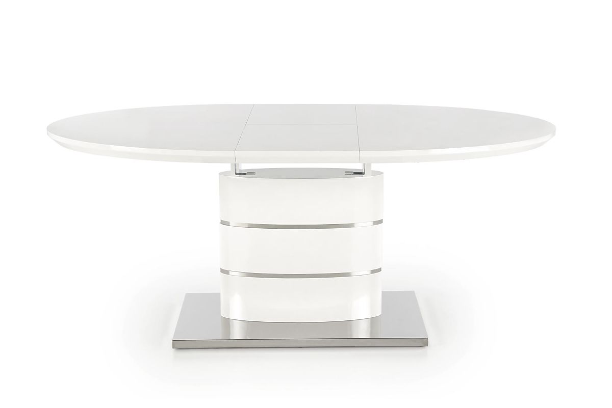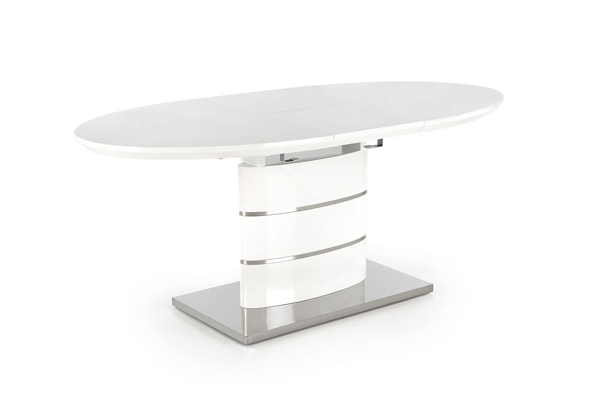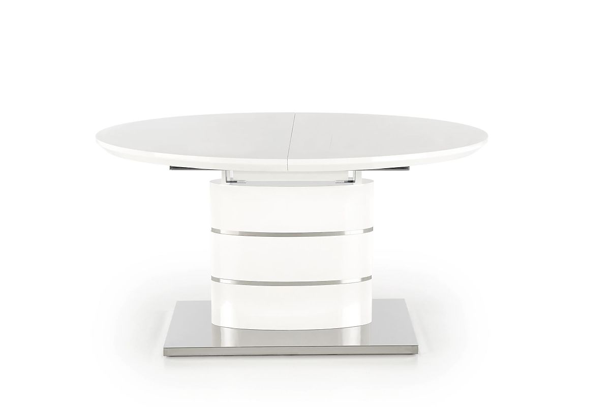 Proširivi bijeli stol od lakiranog MDF-a i nehrđajućeg čelika. .. više