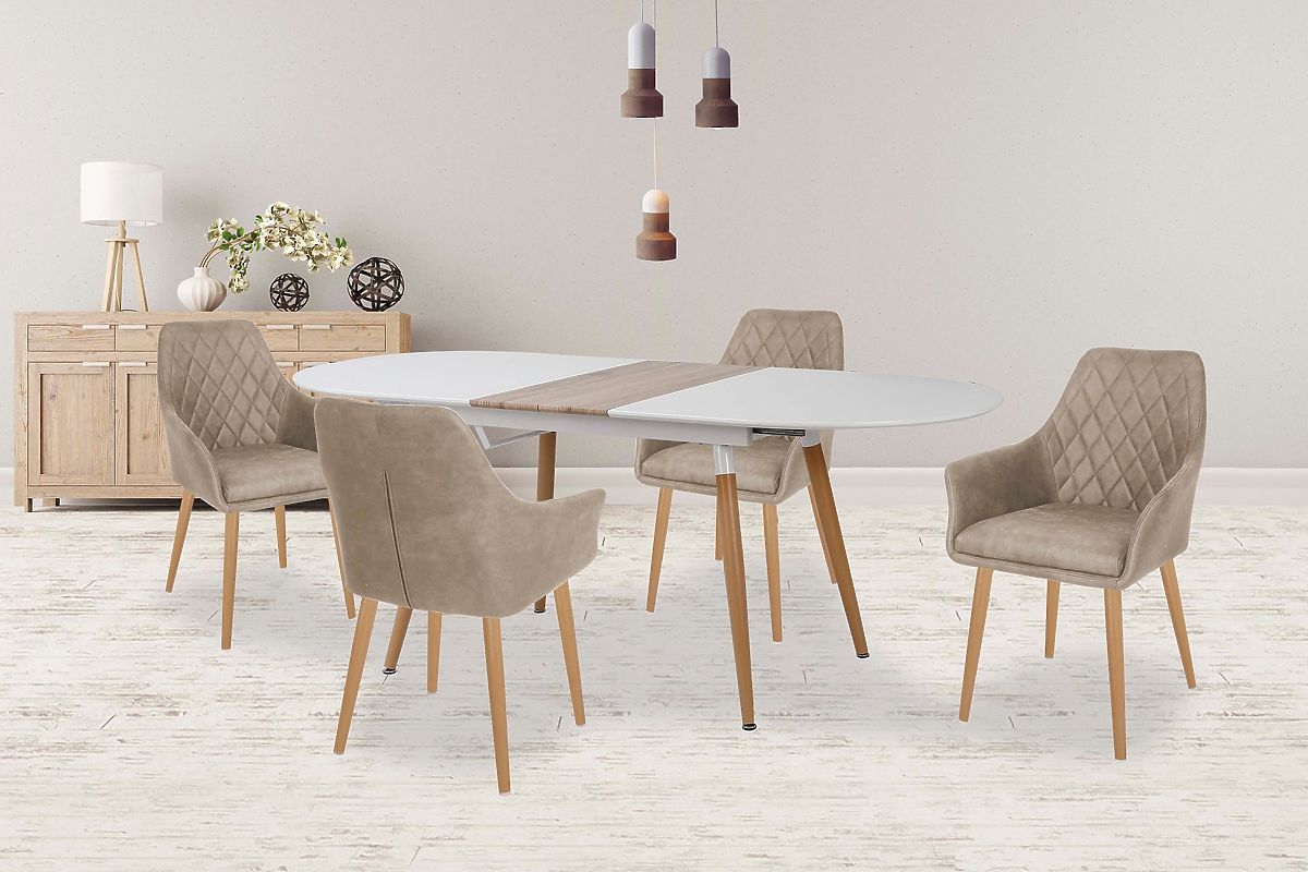 Proširivi stol u bijeloj mat boji i hrastu san remo. .. više