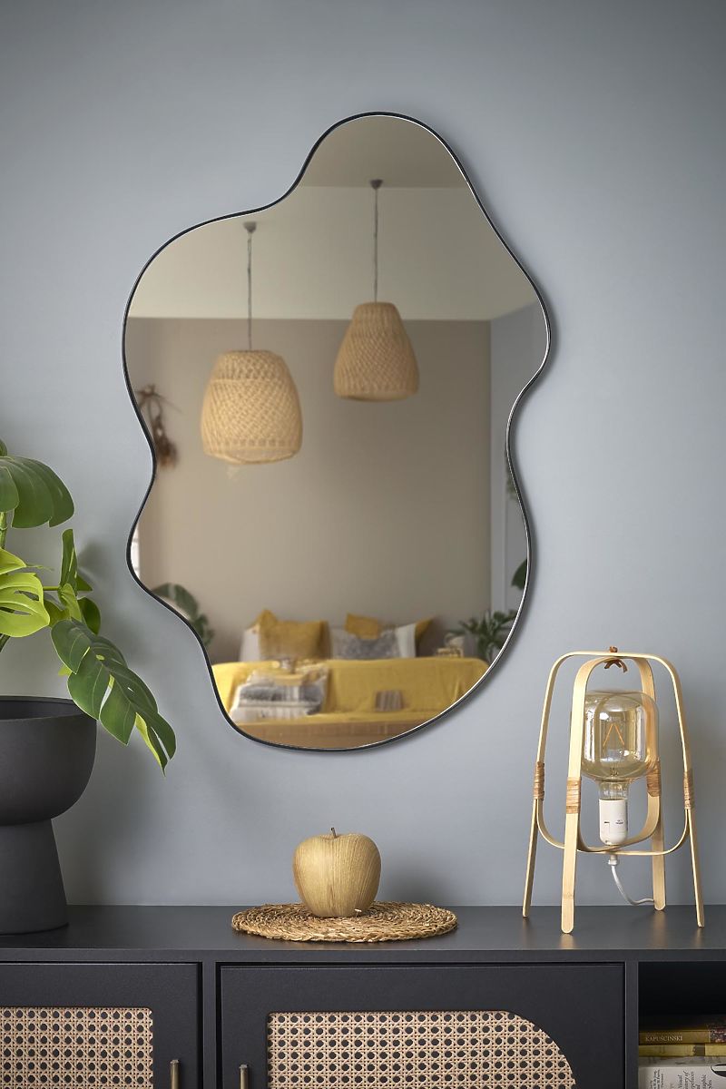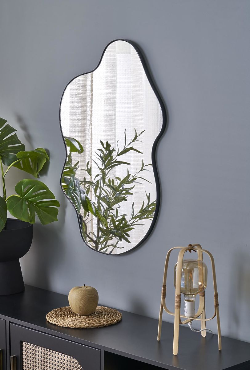 Zidno ogledalo s crnim brušenim željeznim okvirom. .. više