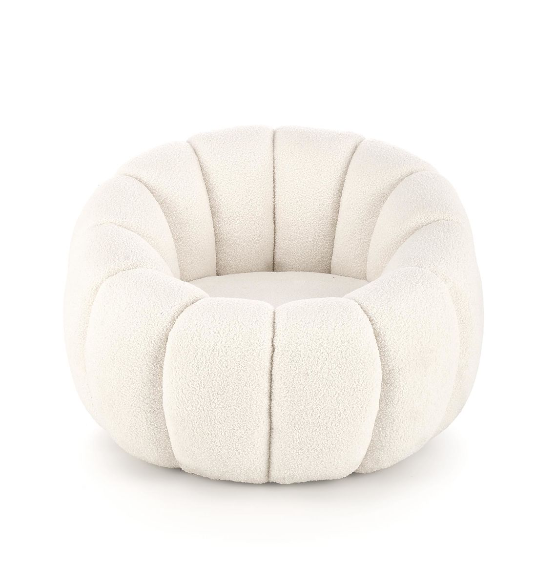 Krem fotelja za opuštanje od bouclé tkanine. .. više