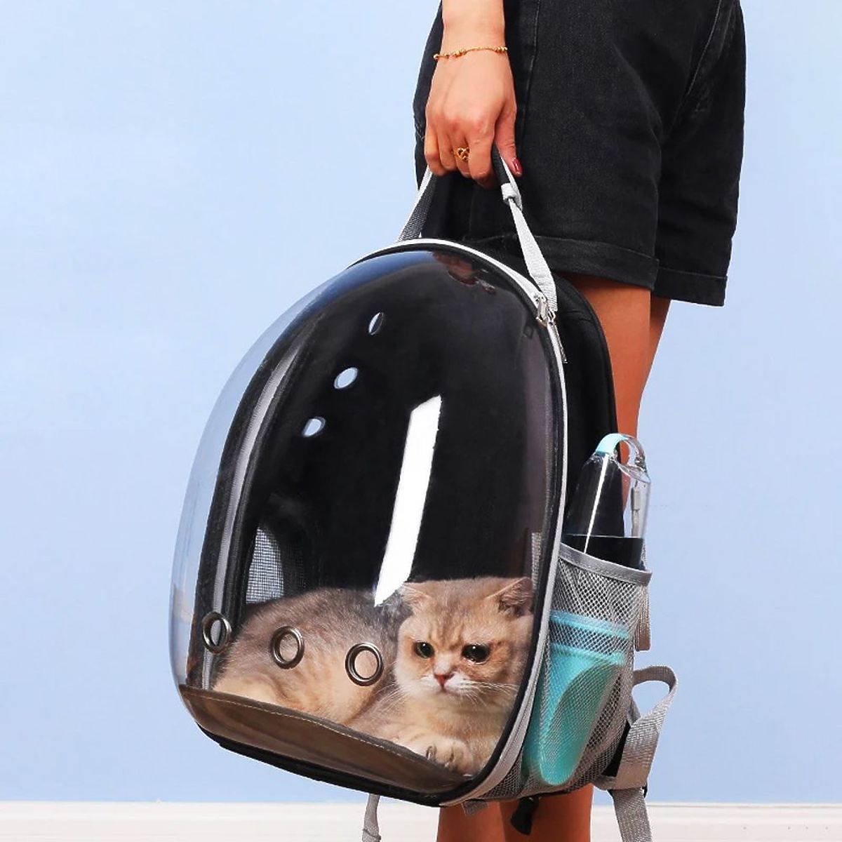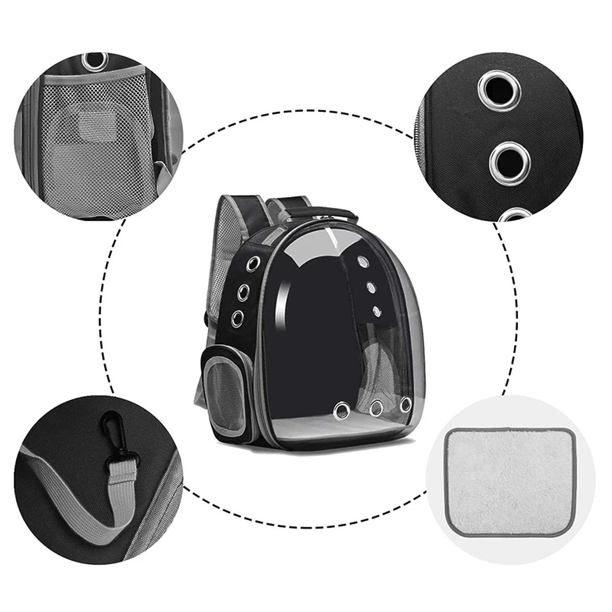 Ruksak transporter za životinje je udobno i praktično rješenje za sigurno nošenje malih kućnih ljubimaca. Izrađen od izdržljivih materijala, osigurava udobnost kako za životinju, tako i za vlasnika. Ruksak je opremljen ventilacijskim panelima i otvorima koji osiguravaju pravilan protok zraka te sigurnim zatvaračima koji sprječavaju bijeg životinje. Ergonomski remeni i džep za dodatke čine ruksak funkcionalnim i udobnim za svakodnevnu upotrebu. Savršen za šetnje, putovanja i posjete veterinaru.