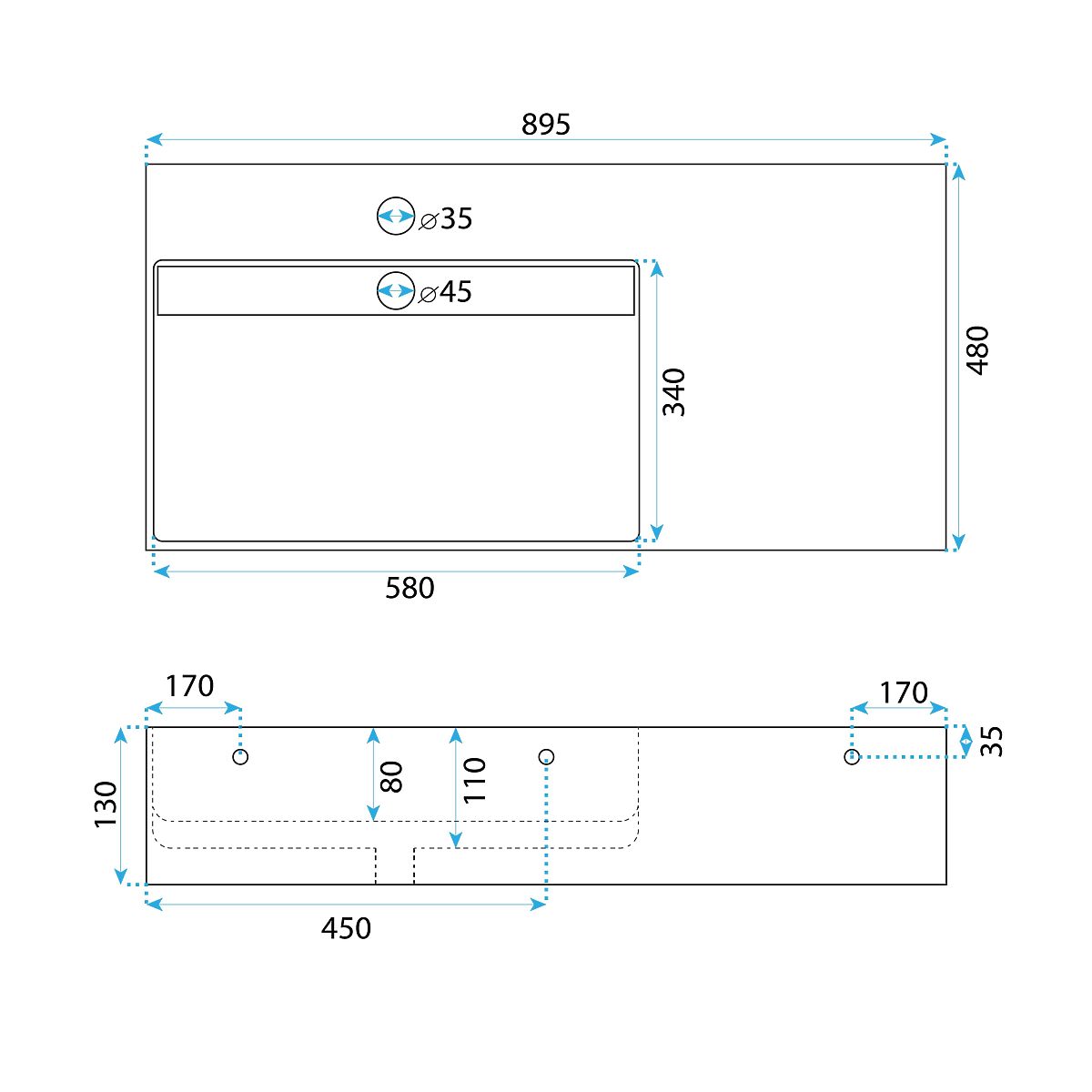 Dimenzije: duljina 895 mm, širina 480 mm, što osigurava udobnost pri korištenju.