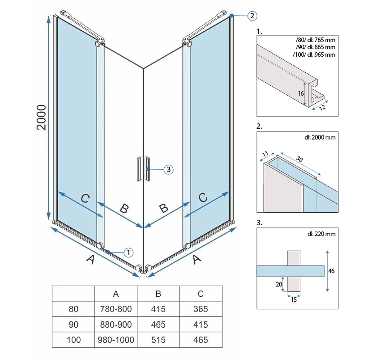 Tuš kabina s dvostrukim kliznim vratima i zlatnim akcentima. .. više
