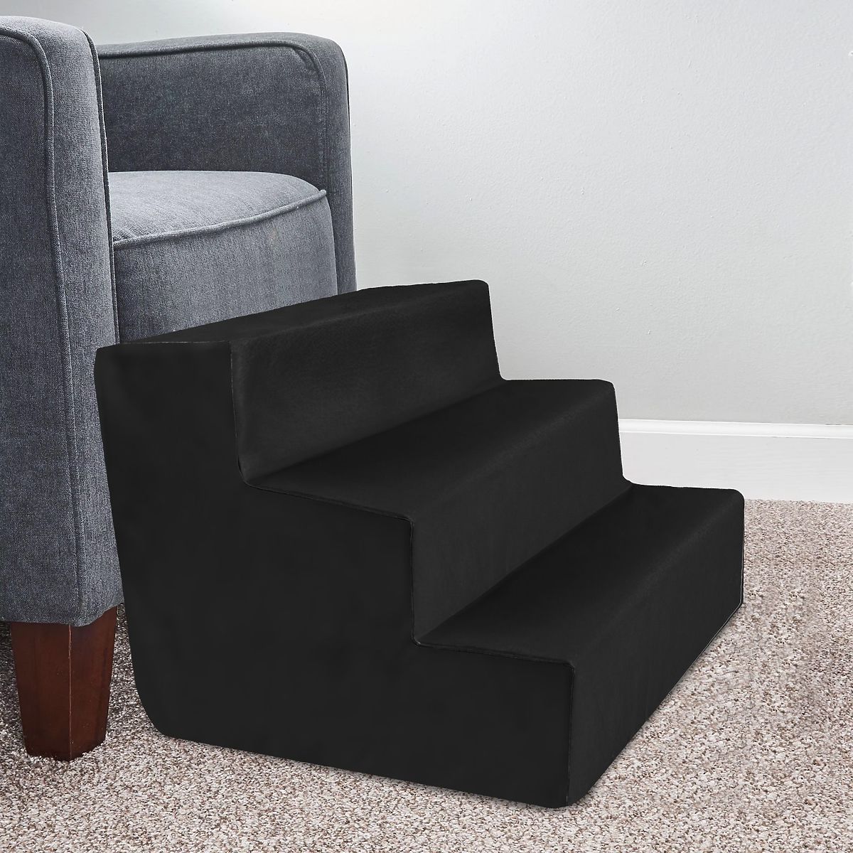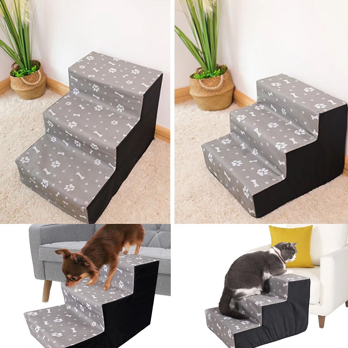 Stepenice za životinje su praktično i udobno rješenje za vašeg ljubimca. Zahvaljujući tri stabilne stepenice omogućuju jednostavno i sigurno penjanje na sofu, krevet ili druge povišene površine. Izrađene od izdržljivih materijala, lagane su i istovremeno čvrste, što osigurava udobnost kako za male pse, tako i za mačke. Klasičan crni dizajn savršeno se uklapa u svaki interijer. Navlaka se lako skida i čisti, što olakšava održavanje proizvoda čistim.