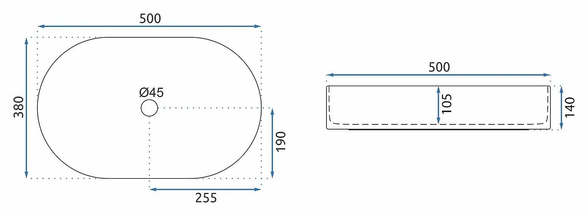 Bezvremenski umivaonik Rea Nadia 50 Black Stone