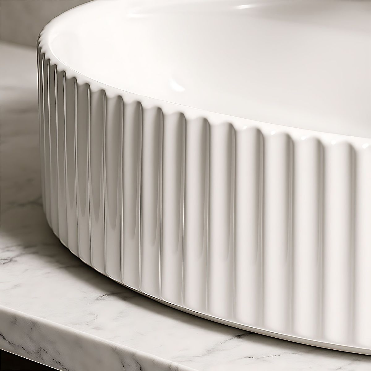 Bezvremenski umivaonik Marcela s utorima elegantna je kombinacija funkcionalnosti i modernog dizajna. Izrađen od visokokvalitetne sanitarne keramike, odlikuje se trajnošću, otpornošću na ogrebotine i jednostavnim održavanjem. Njegov ovalni oblik s dekorativnim, vertikalnim utorima na vanjskim zidovima daje interijeru jedinstven karakter i nježnu teksturu koja naglašava stil uređenja.