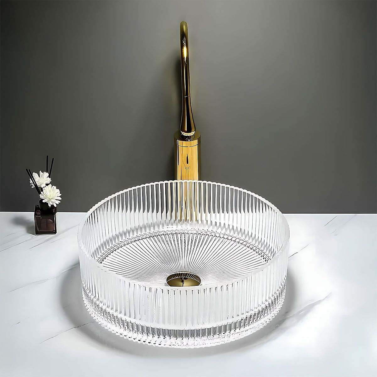 Namještajni umivaonik Ingrid 36 idealan je izbor za one koji traže elegantno i originalno rješenje za svoju kupaonicu. Izrađen od visokokvalitetnog stakla, privlači pažnju rebrastom površinom i prozirnim dizajnom, koji interijeru daje jedinstven karakter i luksuzni stil.
