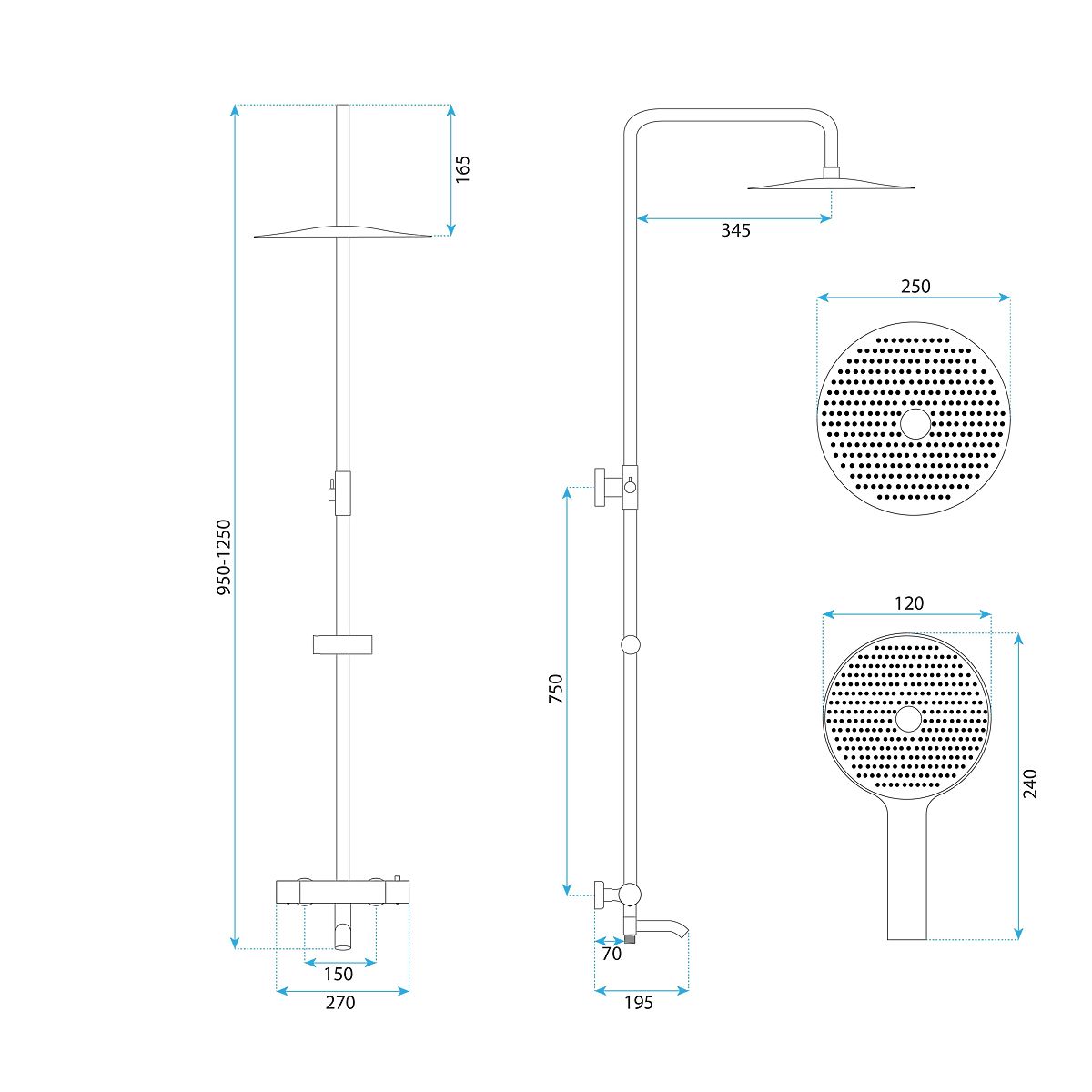 Tuš set s termostatom Rea Lungo Diamond bakreni