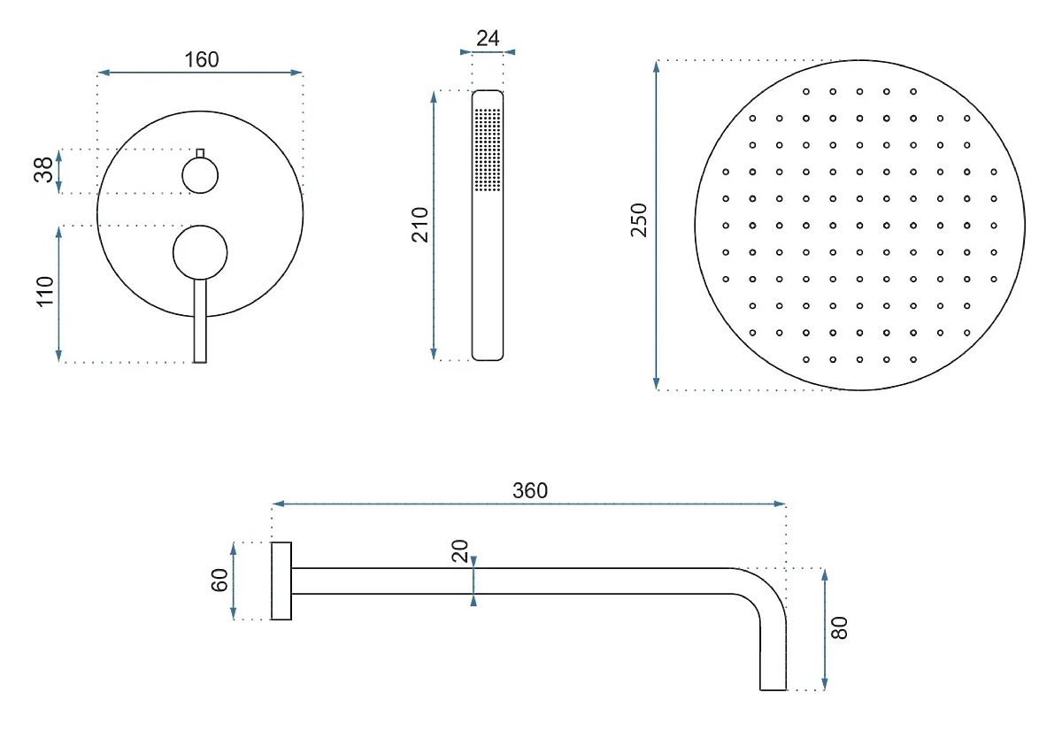 Ugradbeni tuš set Lungo namijenjen je onima koji cijene moderan dizajn, udobnost i pouzdanost. Set uključuje nadglavni tuš, praktični ručni tuš i ugradbenu miješalicu s preklopnikom funkcija, što omogućuje udobno korištenje tuša u svakoj situaciji.