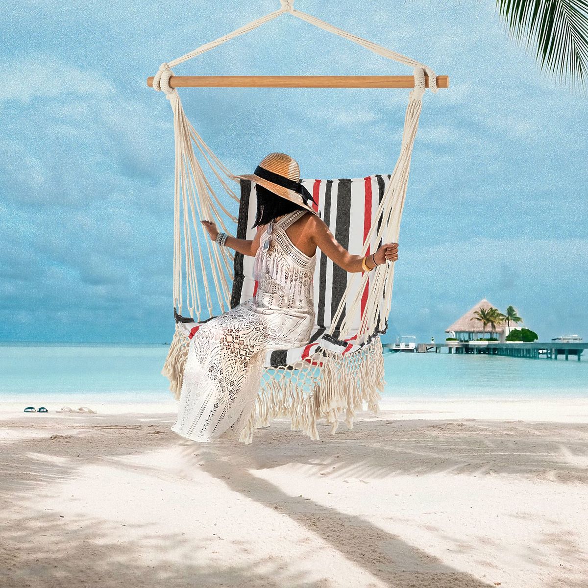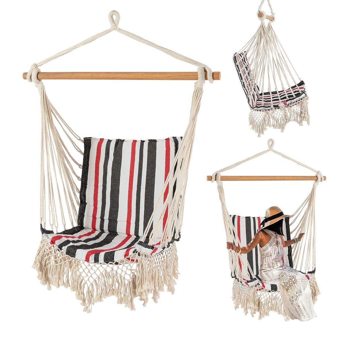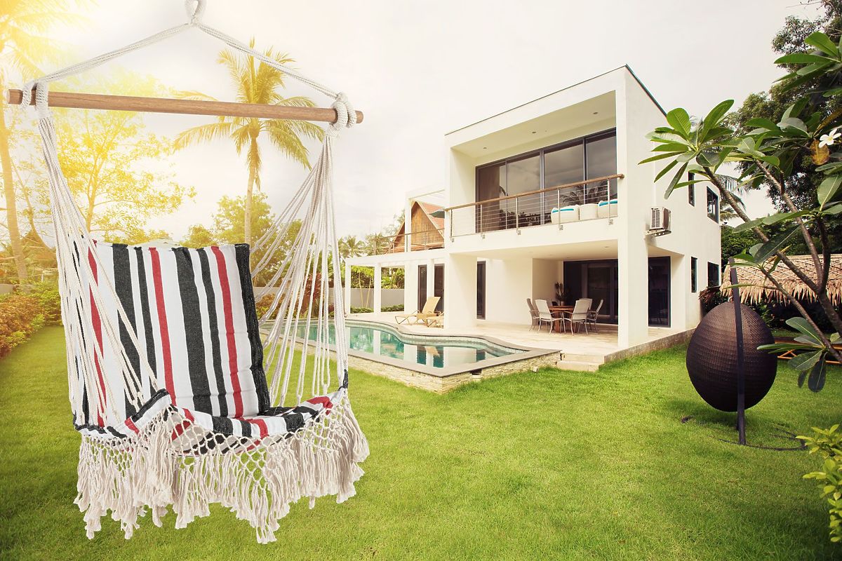 Izuzetno udobno i pouzdano mjesto za odmor! Možete se opustiti, popiti kavu, pročitati knjigu ili zaspati. Želite li probuditi maštu svoje djece i želju za igrom na svježem zraku? Naručite viseću mrežu za sebe i članove svoje obitelji! Viseća mreža je vrlo udobna – izrađena od pamuka prilagođava se točno onako kako želite sjediti. Nema užadi niti šavova koji pritiskaju. Paket uključuje dva jastuka također od pamuka.