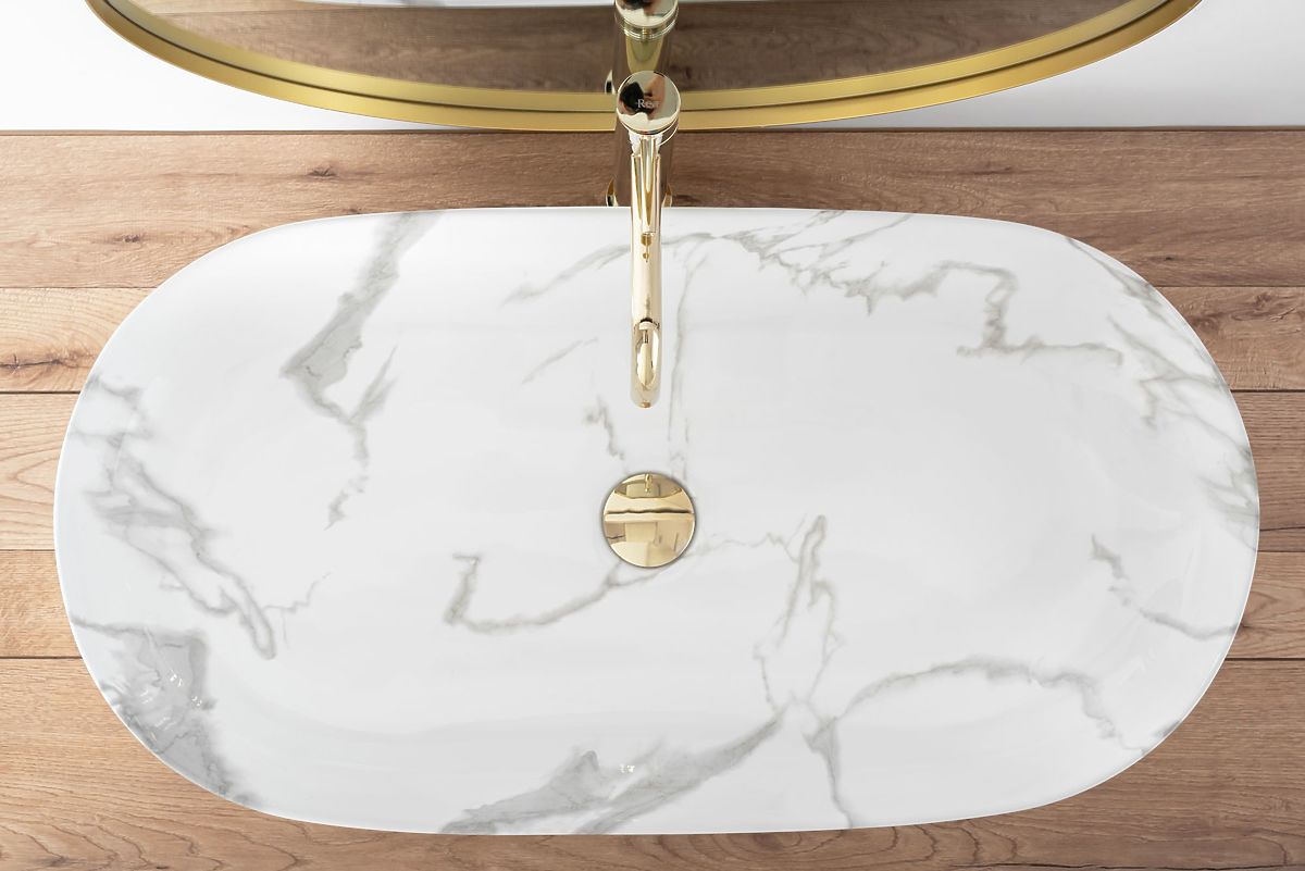 Predstavljamo vam moderan, jedinstven umivaonik s kamenim uzorkom i neobičnim oblikom. Umivaonik Cleo donijet će eleganciju u vašu kupaonicu, može postati izuzetan element ili suptilan dodatak. Ako se odlučite za sjaj ove plemenite boje, konačni efekt zasigurno će donijeti lakoću i originalnost.