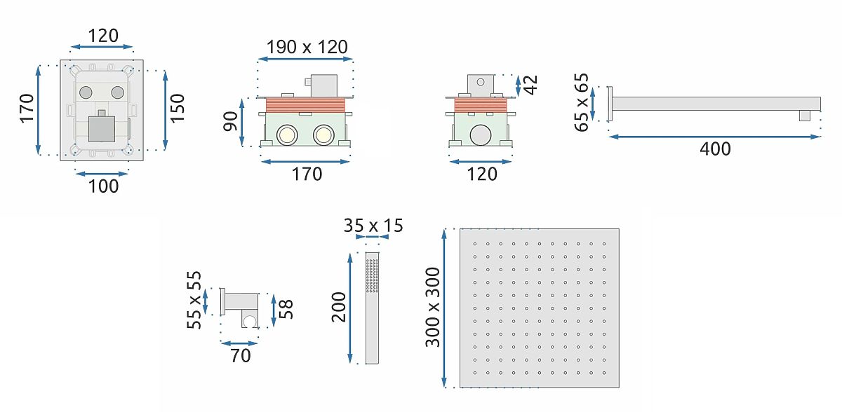 Predstavljamo vam ugradbeni tuš set iz serije Davis. Zahvaljujući svojoj univerzalnosti i izvrsnim estetskim svojstvima, set je izvrstan izbor za vlasnike svake kupaonice. Moderni oblik nadžbuknih elemenata prekriven je četverostrukim premazom najviše kvalitete. Ova tehnika štiti bateriju od korozije i promjene boje. Komplet sadrži ultra tanku 2mm kvadratnu tuš glavu, bateriju s elementima, crijevo s tuš glavom i točkovni set. Set je savršen za one koji traže neobična rješenja i žele stvoriti originalnu i jedinstvenu kupaonicu svojih snova. Prezentirani tuš set nema regulaciju tlaka vode.