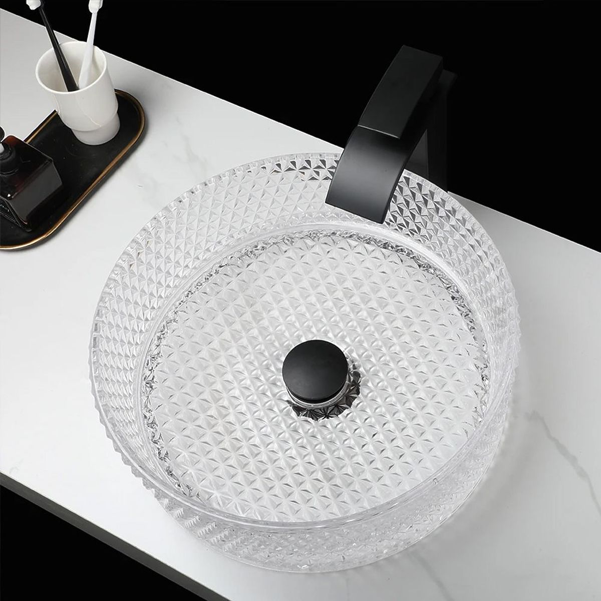 Zanimljiv vizualni efekt naglašava svjetlost koja se reflektira u kristalima. Stakleni umivaonik s kristalnom površinom nesumnjivo se ističe zanimljivim uzorkom i dizajnom.