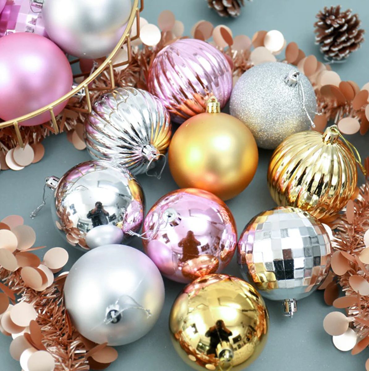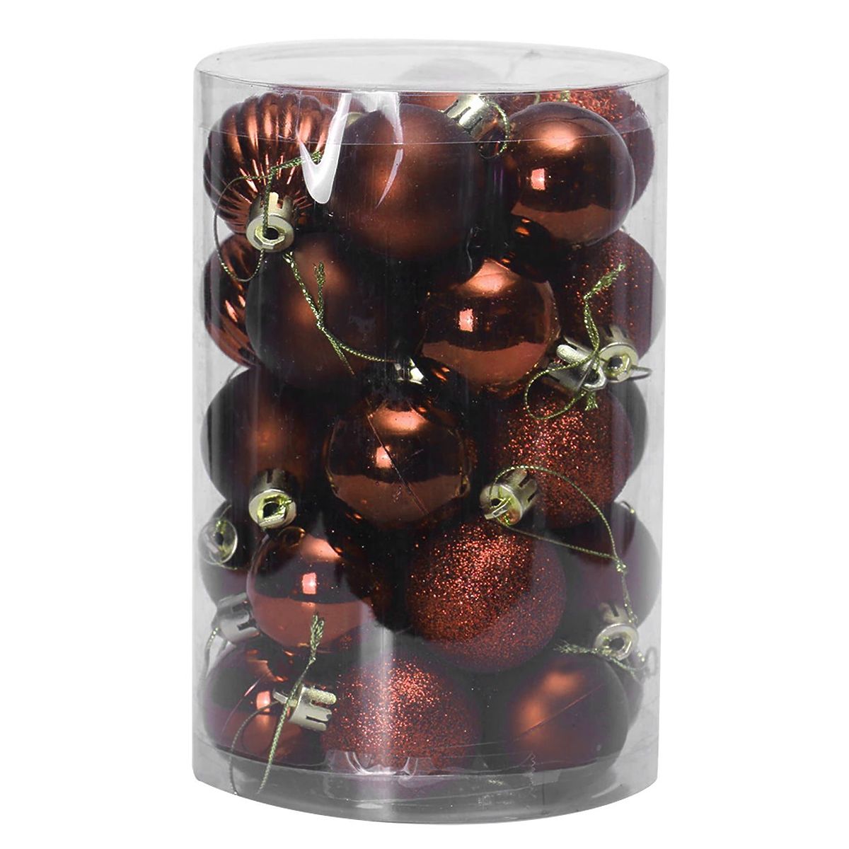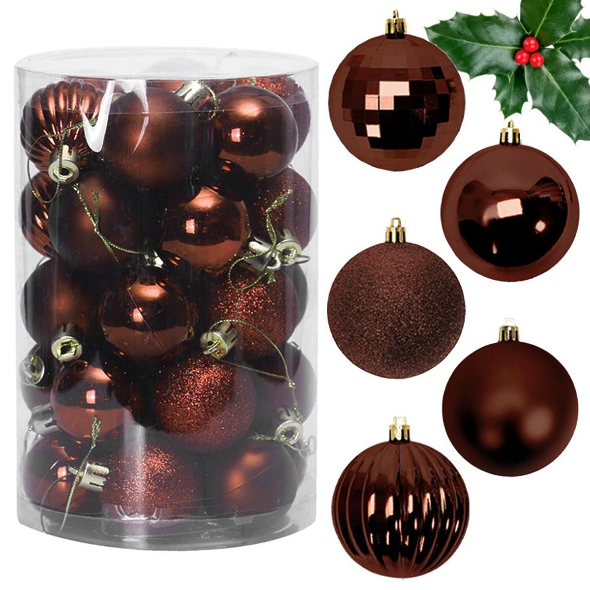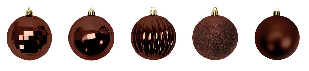 Set smeđih božićnih kuglica od plastike za čarobnu atmosferu. .. više