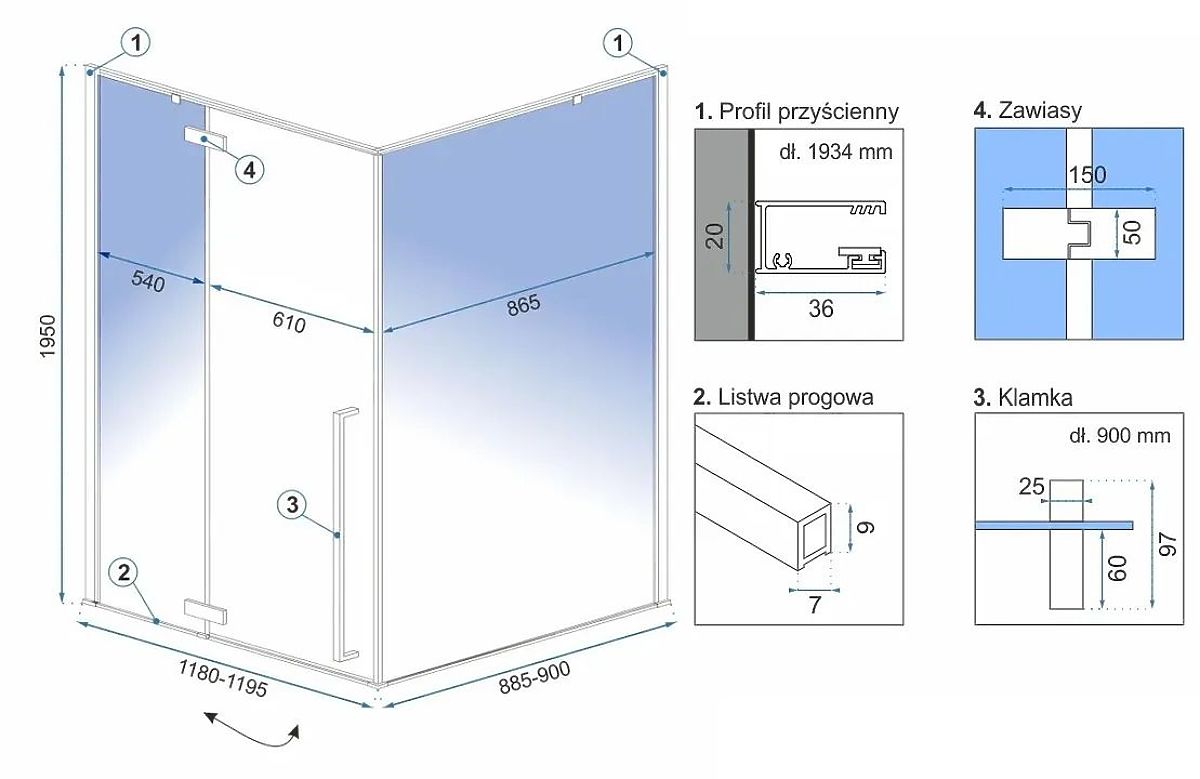 Kabina ima univerzalni profil, može se montirati na desnu ili lijevu stranu. Zahvaljujući svojoj konstrukciji, kabina Fargo omogućuje montažu na tuš kadu različite visine ili izravno na pod. U paketu je sve potrebno za montažu kabine: brtve, držač, šarke.