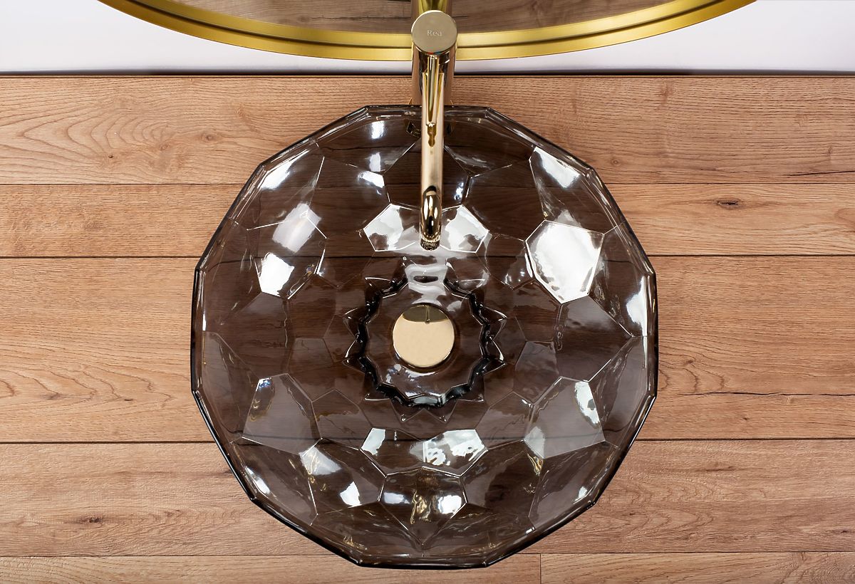 Moderni umivaonik Arctic Black kombinacija je profinjenog oblika zdjele i iznimnog materijala od kojeg je izrađen - dimljenog stakla. Arctic Black je stakleni umivaonik koji se montira izravno na ploču, što omogućuje uštedu prostora u kupaonici. Karakterističan oblik čini umivaonik ukrasom svakog interijera.