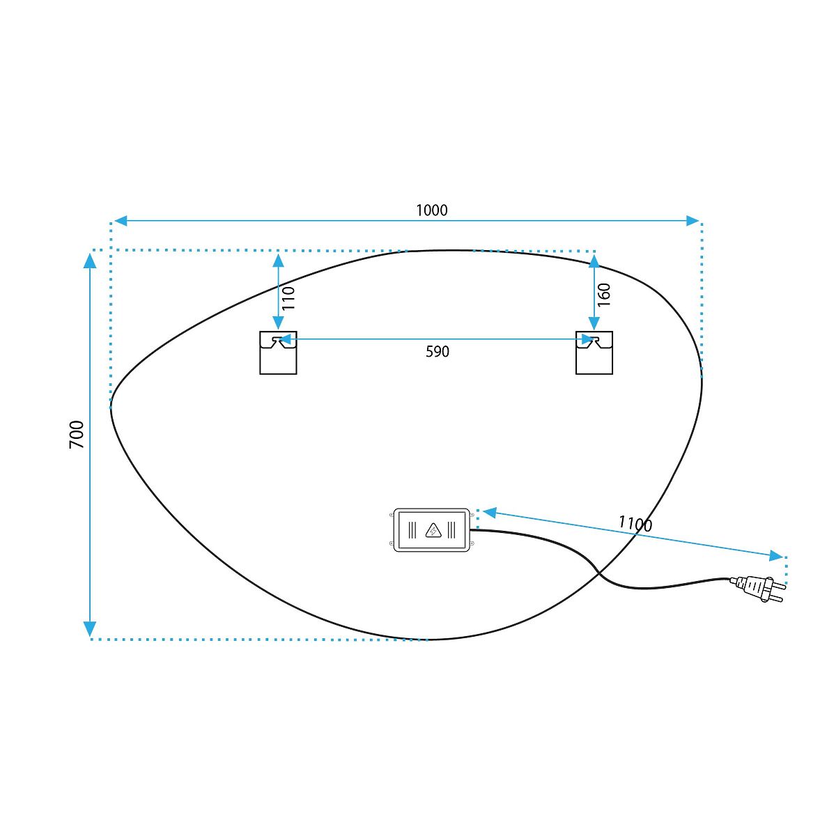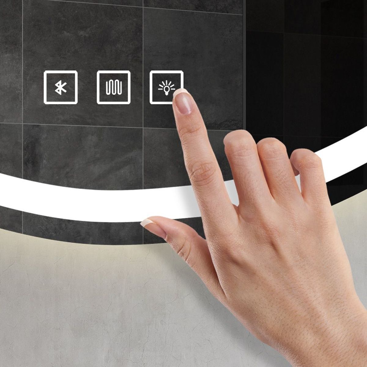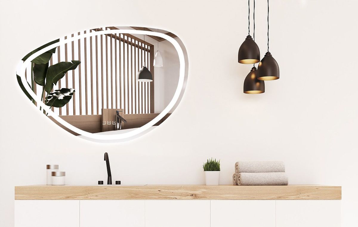 Asimetrično ogledalo s LED pozadinskim osvjetljenjem idealan je izbor za one koji cijene udobnost korištenja i moderan dizajn. Ogledalo je izrađeno od najkvalitetnijih materijala, odlično izgleda i vrlo je izdržljivo. Nudi tri dodirno promjenjive boje LED svjetla – toplu, neutralnu i hladnu, te funkciju grijanja koja sprječava zamagljivanje površine. Bijeli napojni kabel ima duljinu od 110 cm.