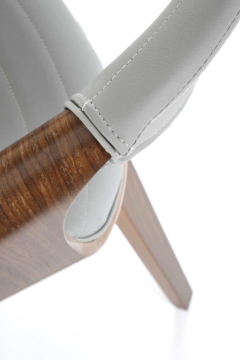 Stolica od savijene šperploče i eko kože u sivoj i orah boji. .. više