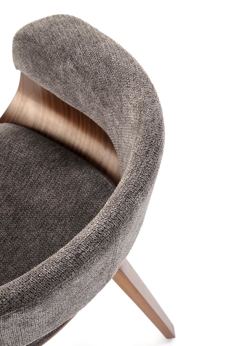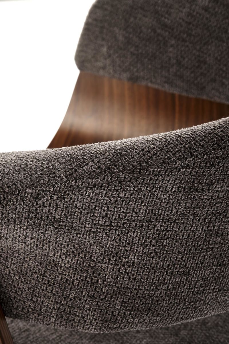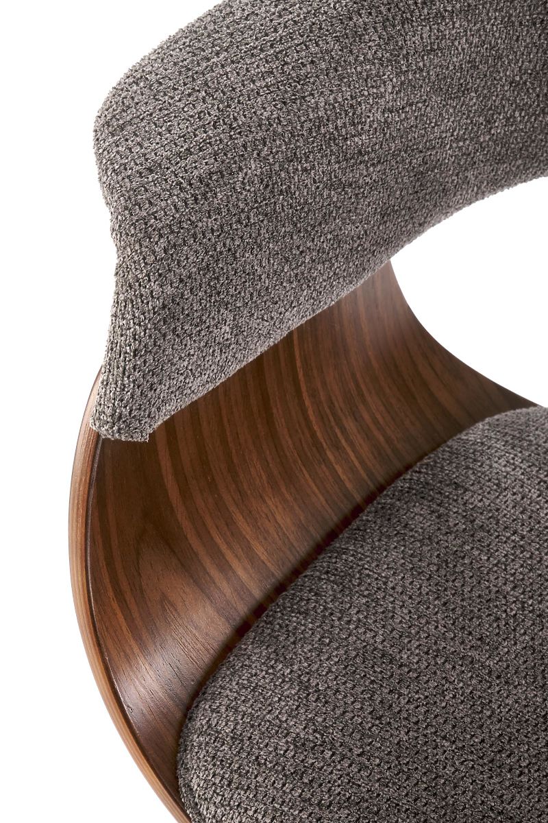Stolica od savijene šperploče i tkanine u sivoj i orah boji. .. više