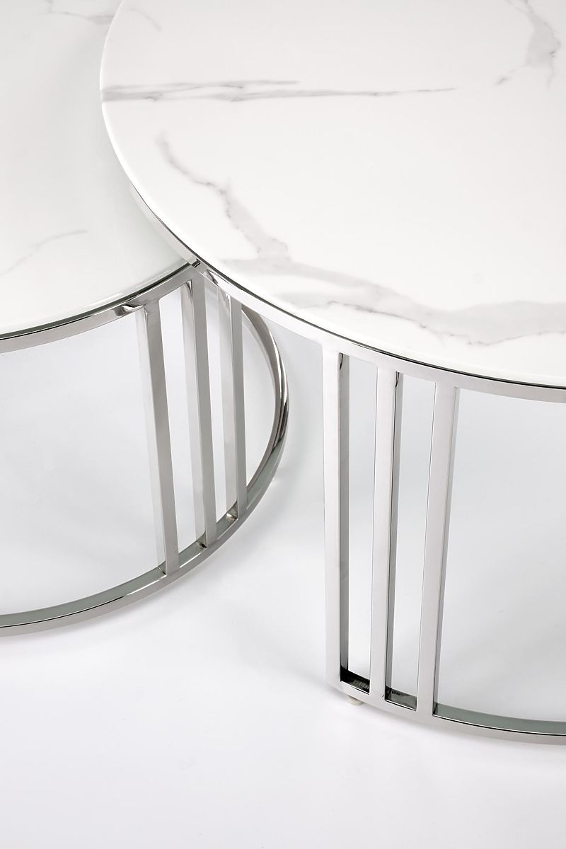 Lukahome.hr » Tablice i stolovi / Konferencija stolovi / MERCURY 2 set 2 klupa, okvir - srebrni, staklo - bijeli mramor (1p=1kom)