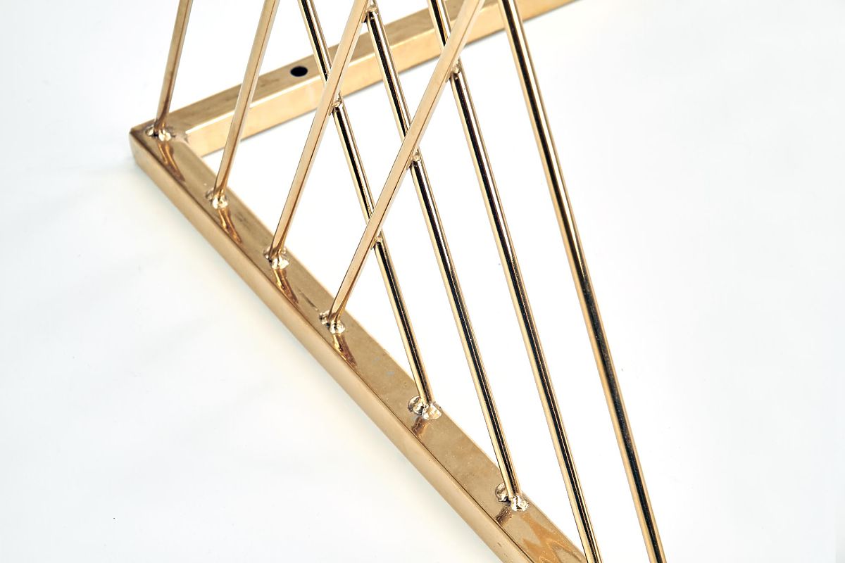 Originalno oblikovano postolje u kombinaciji s prozirnom staklenom pločom daje stolu lagan i elegantan izgled koji privlači pažnju na prvi pogled. Spoj kromiranog čelika u zlatnoj izvedbi i stakla stvara luksuzni dojam i lijepo nadopunjuje moderne i glamurozne interijere.