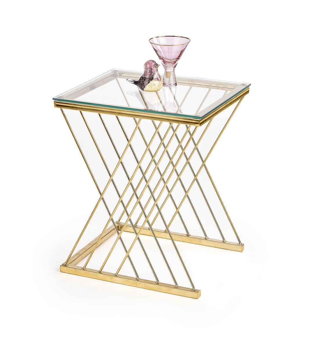 Pomoćni stol NANCY od stakla i zlatnog čelika. .. više
