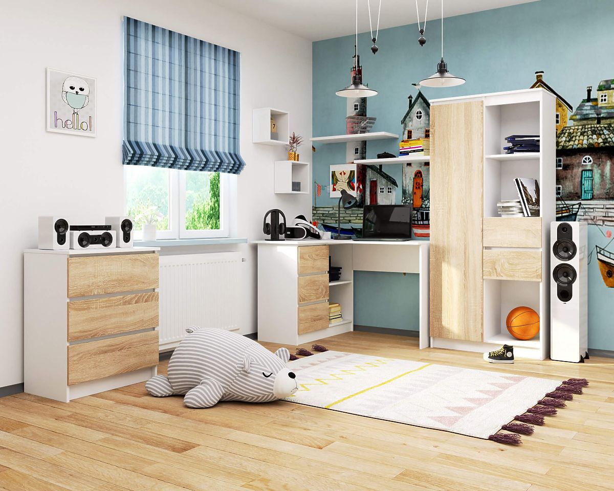 Kutni računalni stol s 3 ladice, bijela i hrast sonoma. .. više