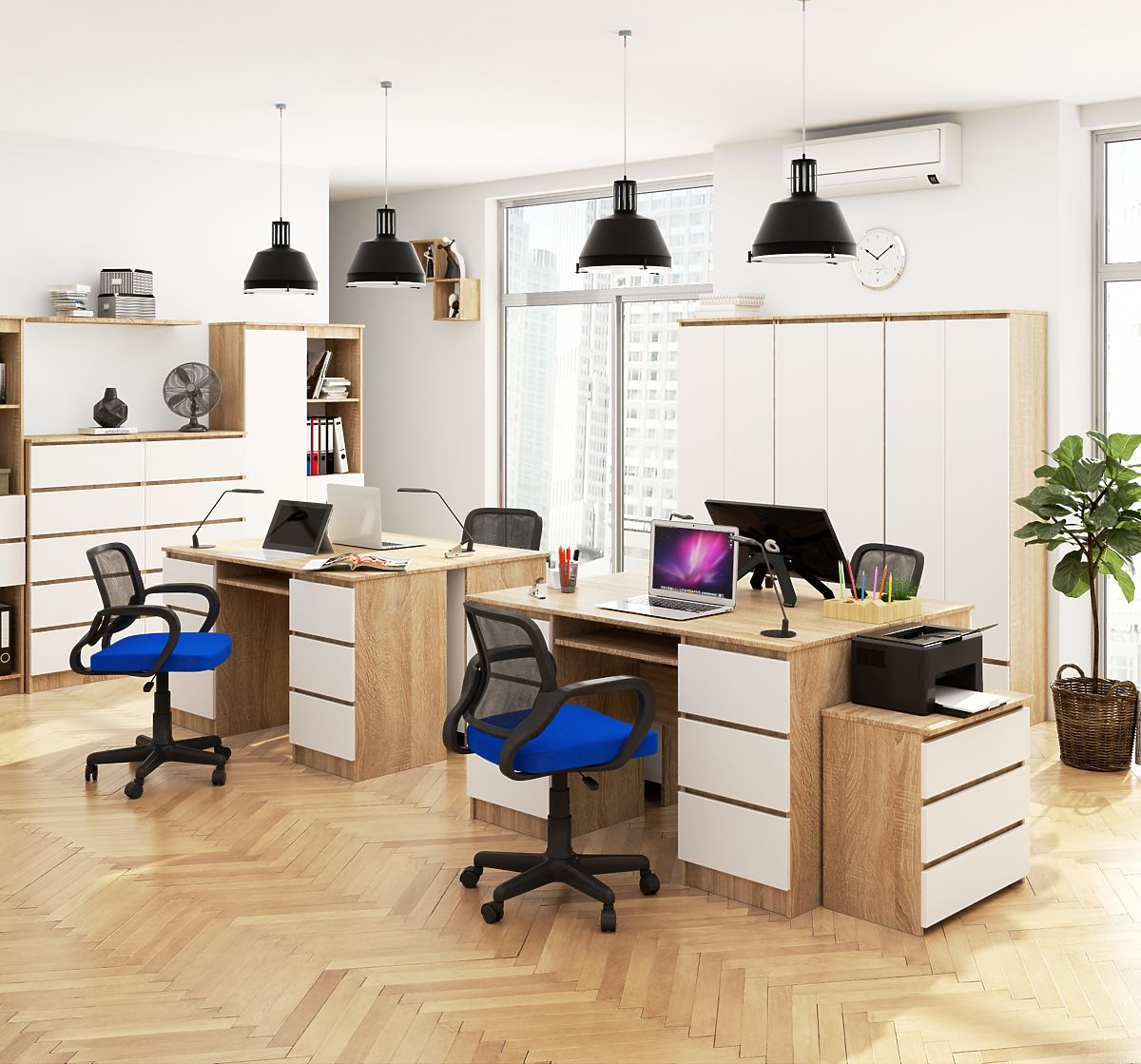 Pisaći stol od hrasta Sonoma s bijelim frontama i 6 ladica. .. više