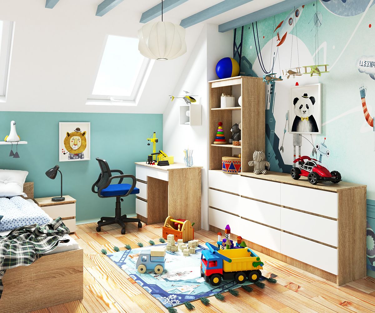 Lijevostrani računalni stol u boji hrasta sonoma s bijelim prednjim površinama i četiri prostrane ladice. Odlično se uklapa u dječju, studentsku sobu, ali i u ured ili radnu sobu. Stol je dio namještajnog sustava CLP, dizajniran je tako da se uklapa s ostalim namještajem iz ove serije. Zahvaljujući tome možete opremiti sobu različitim namještajem, kao što su police ili komode, koje će biti oblikovno i bojom usklađene. Ima moderan dizajn, ladice bez ručki daju namještaju minimalistički šarm. Nudi puno prostora za pohranu zahvaljujući četiri ladice. Zahvaljujući klasičnom izgledu, stol ima univerzalan karakter i nikad ne izlazi iz mode. Konstrukcija stola omogućuje udobno i ergonomsko korištenje računala.