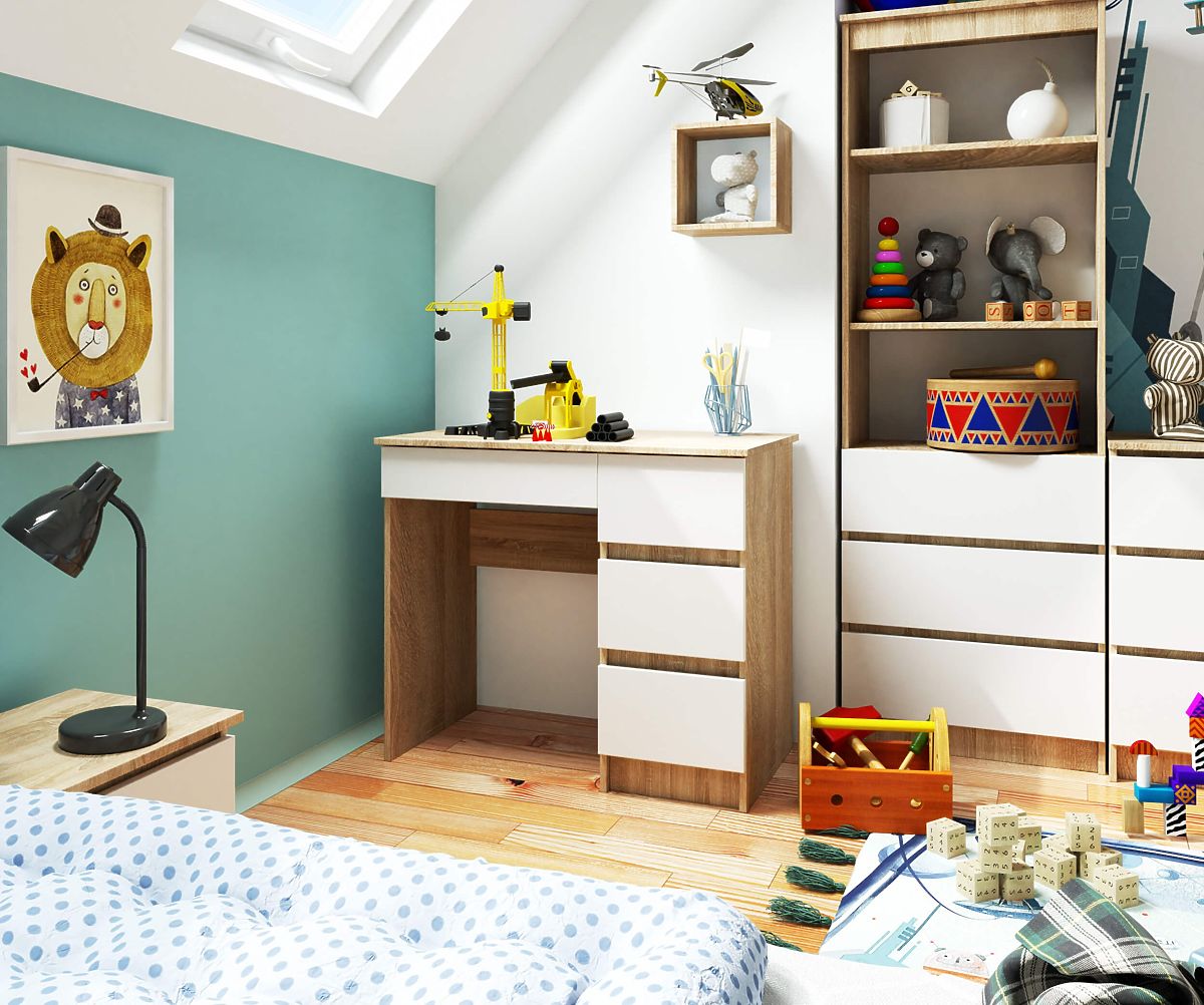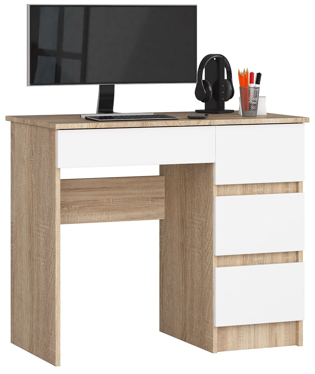 Povoljni i istovremeno kvalitetni računalni stol za udobno učenje i rad? Da, to je moguće s ponudom naše trgovine, gdje možete pronaći računalni stol A-7 širine 90 cm u desnoj sonomi i bijeloj boji. To je moderan i istovremeno funkcionalan namještaj. Idealan je za dnevni boravak, sobu za mlade ili ured.