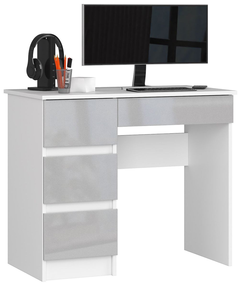 Pravilno odabran pisaći stol ključ je za učinkovito i udobno učenje i rad. Za ove zadatke svakako je prikladan računalni stol A-7! 3 prostrane ladice dubine 38,5 cm smještene na lijevoj strani izvrsno su mjesto za pohranu bilješki ili pisaćeg pribora, dok je četvrta izvlačna ispod ploče idealna za smještaj dodatne opreme. Kombinacija bijele i metalik boje omogućuje da računalni stol može biti smješten kako u uredu, tako i u šarenoj dječjoj ili mladenačkoj sobi, gdje će činiti nježan dodatak interijeru.