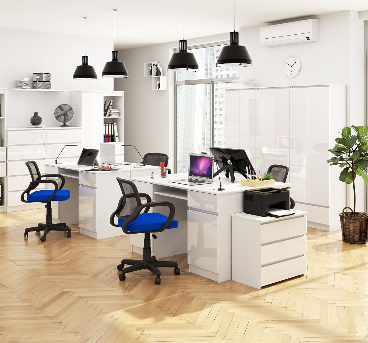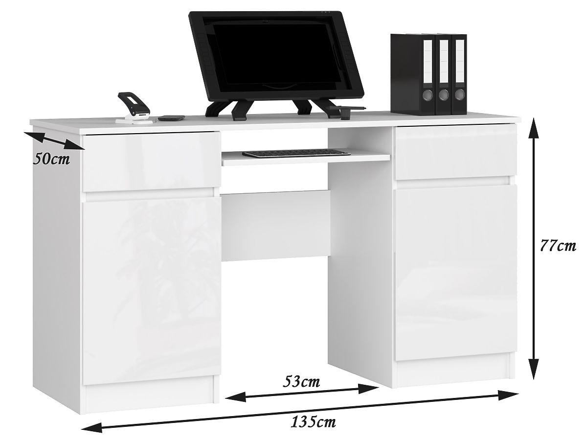 Pisaći stol s bijelim sjajem i laminiranom pločom debljine 16 mm. .. više