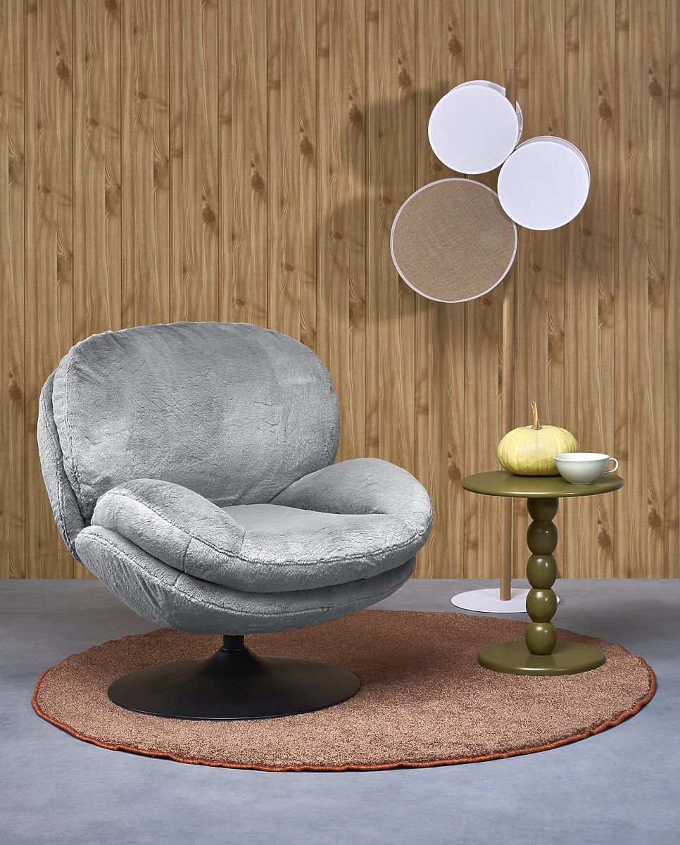 Fotelja SHELL s funkcijom okretanja i sivom tkaninom. .. više