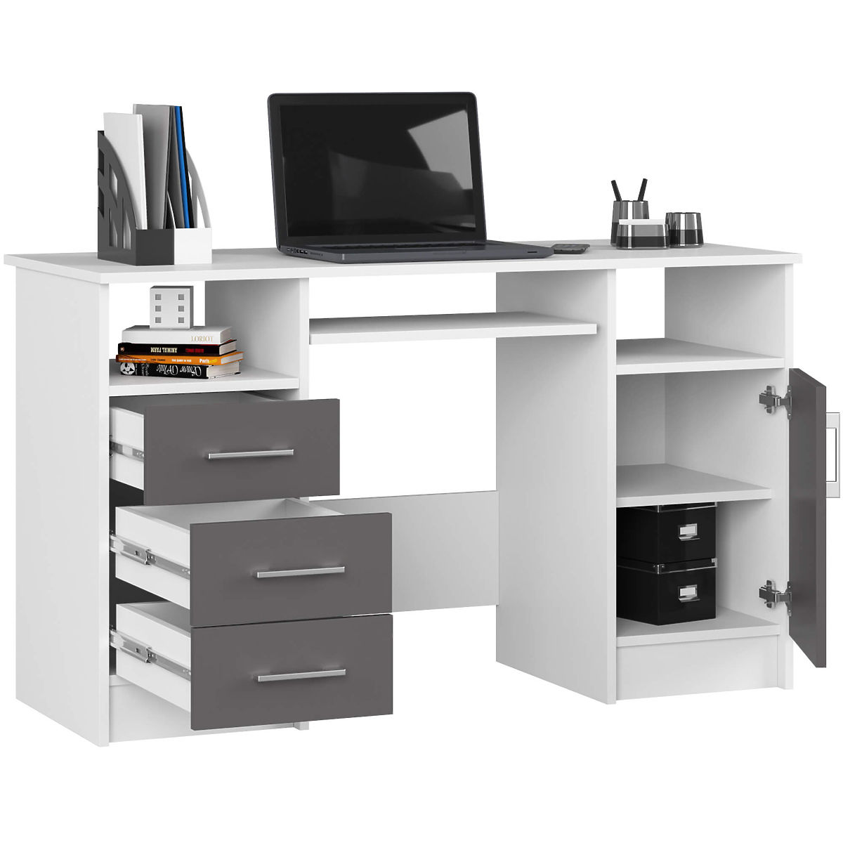 Računalni stol ANA 124 cm u bijeloj i sivoj boji s puno prostora za organizaciju. .. više