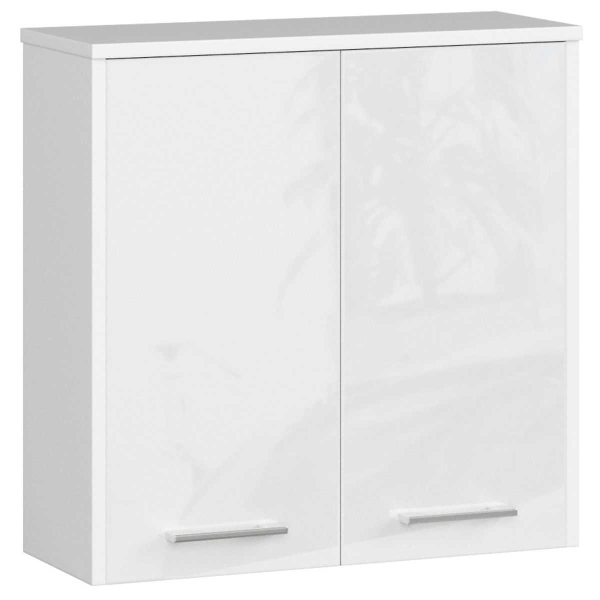 Bijeli viseći ormarić za kupaonicu s visokim sjajem i dvije police. .. više