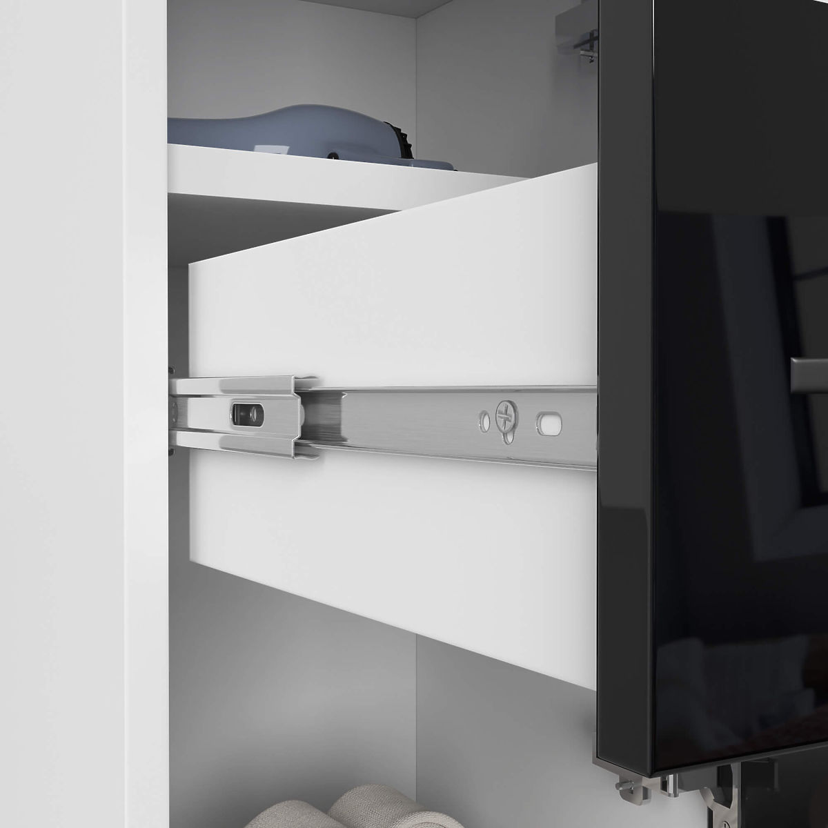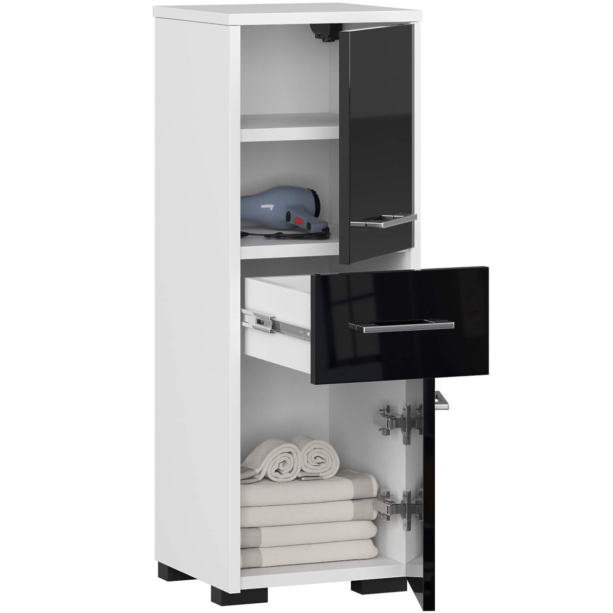 Za kupaonske interijere nudimo ormarić-stupac, kupaonski regal fin 2D 1SZ (bijeli/crni sjaj), koji: