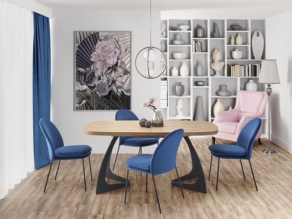 Lukahome.hr » Blagovaonica i kuhinja / Blagovaonski stolovi / Proširivi stol VELDON, ploča - prirodni hrast, noge - crne (2p=1ks)