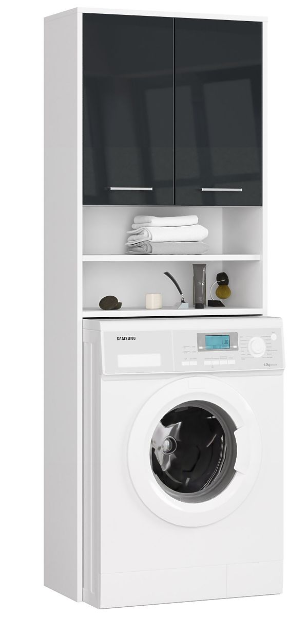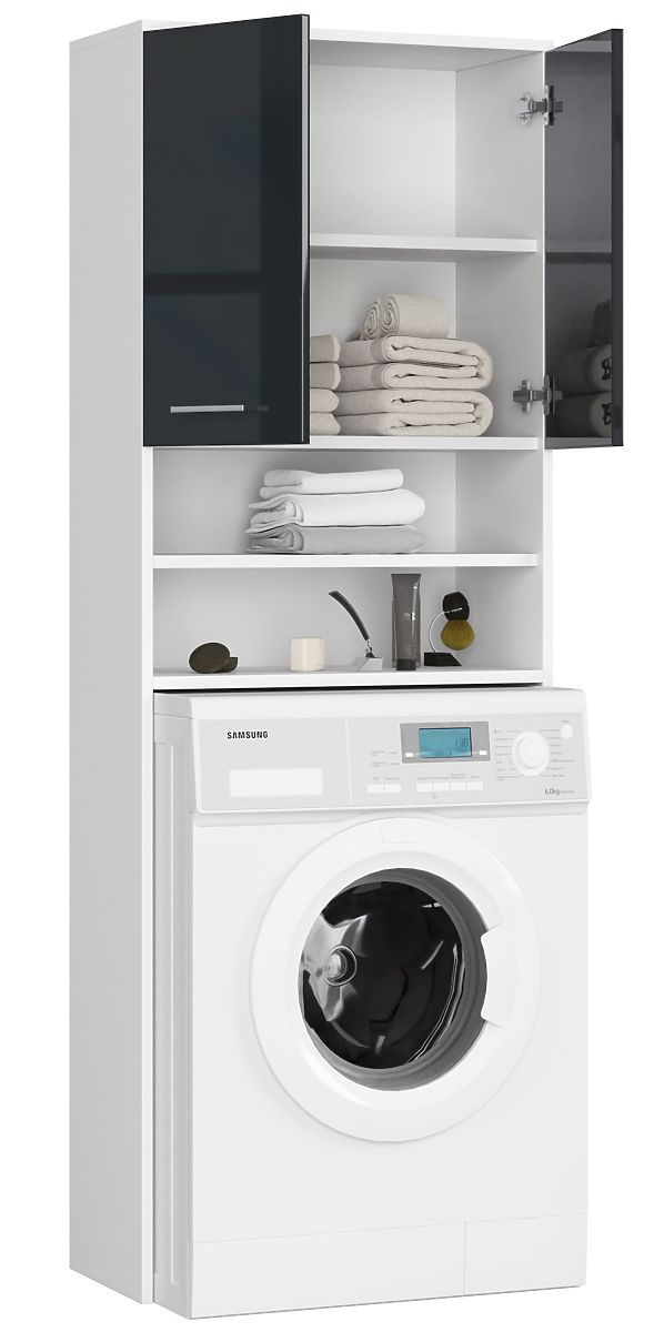 Lukahome.hr » Kupaonica i WC / Kupaonski ormarići / KUPAONSKI REGAL FIN IZNAD PERILICE BIJELI / GRAFIT VISOKI SJAJ
