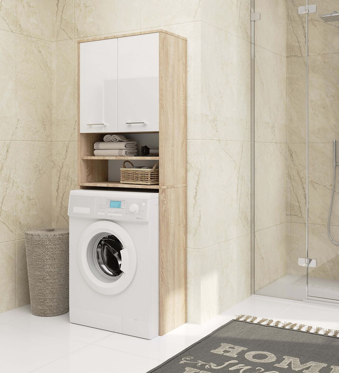 Lukahome.hr » Kupaonica i WC / Kupaonica ormari / KUPAONSKI REGAL FIN IZNAD PERILICE DUB SONOMA / BIJELI SJAJ