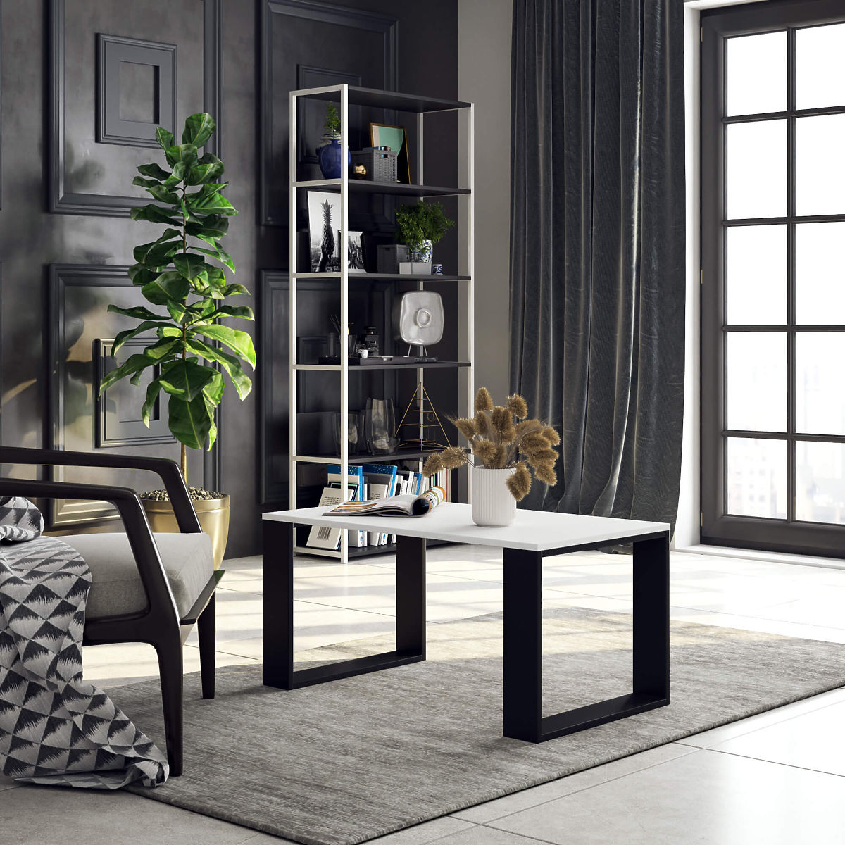 Bijeli klub stol Nox s crnim nogama za moderan i funkcionalan interijer. .. više
