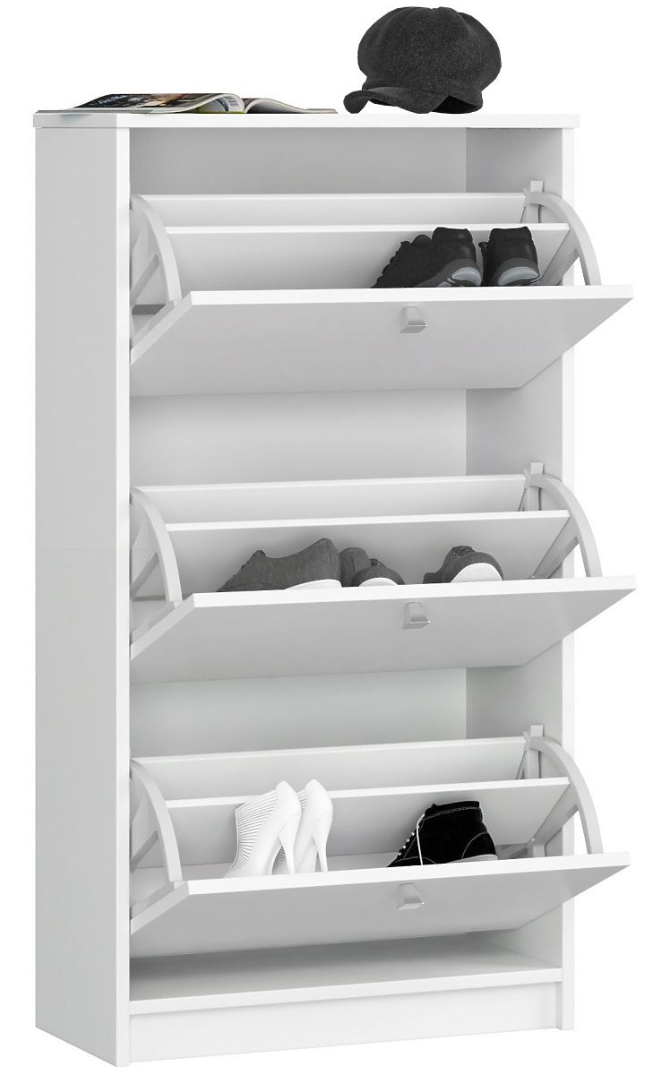 Bijeli ormarić za cipele s 3 preklopna vrata, dimenzija 60x113x28,5 cm. .. više