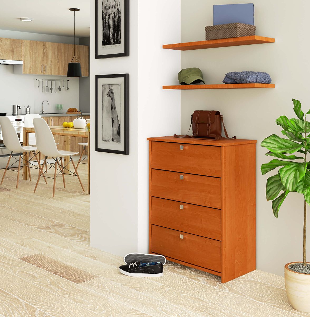 Ormarić za cipele u boji rubin johe je estetski i funkcionalan. Namještaj je prikladan za velike i male hodnike. Ormarić ima četiri prostrane police s preklopnim vratima i ručkama u satenskoj boji. U ormarić stanu cipele svih veličina i pribor za čišćenje obuće. Oprema hodnika ormarićem za cipele olakšava održavanje reda. Namještaj izgleda tako efektno da se uklapa i u najotmjeniji interijer hodnika, bez obzira na stil u kojem je prostorija uređena. Boja namještaja je univerzalna, pa će ormarić za cipele izgledati dobro i u kombinaciji s vješalicom ili garderobom u drugoj nijansi. Ormarić je izrađen od laminirane ploče koja je vrlo otporna na habanje i mehanička oštećenja. Rubovi namještaja završeni su estetskim i otpornim ABS rubom. Ormarić se može brisati mokrom krpom, što olakšava održavanje namještaja u besprijekornoj čistoći.