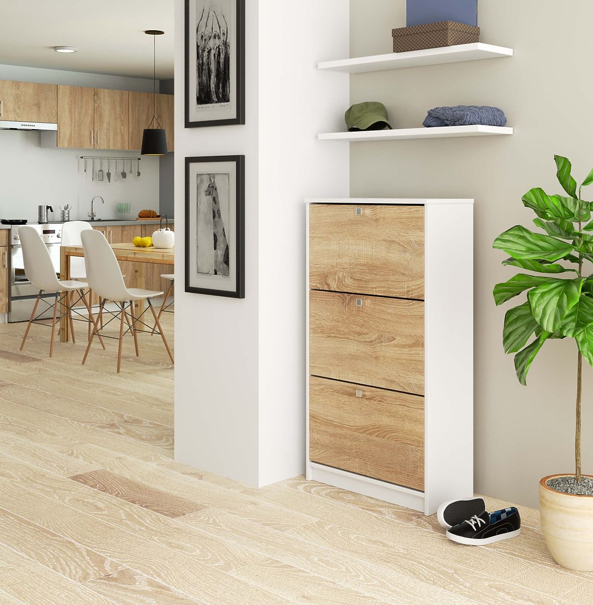 Lukahome.hr » Namještaj / Stalak za cipele / Ormarić za cipele s 3 preklopna vrata 60 cm - bijela-hrast sonoma