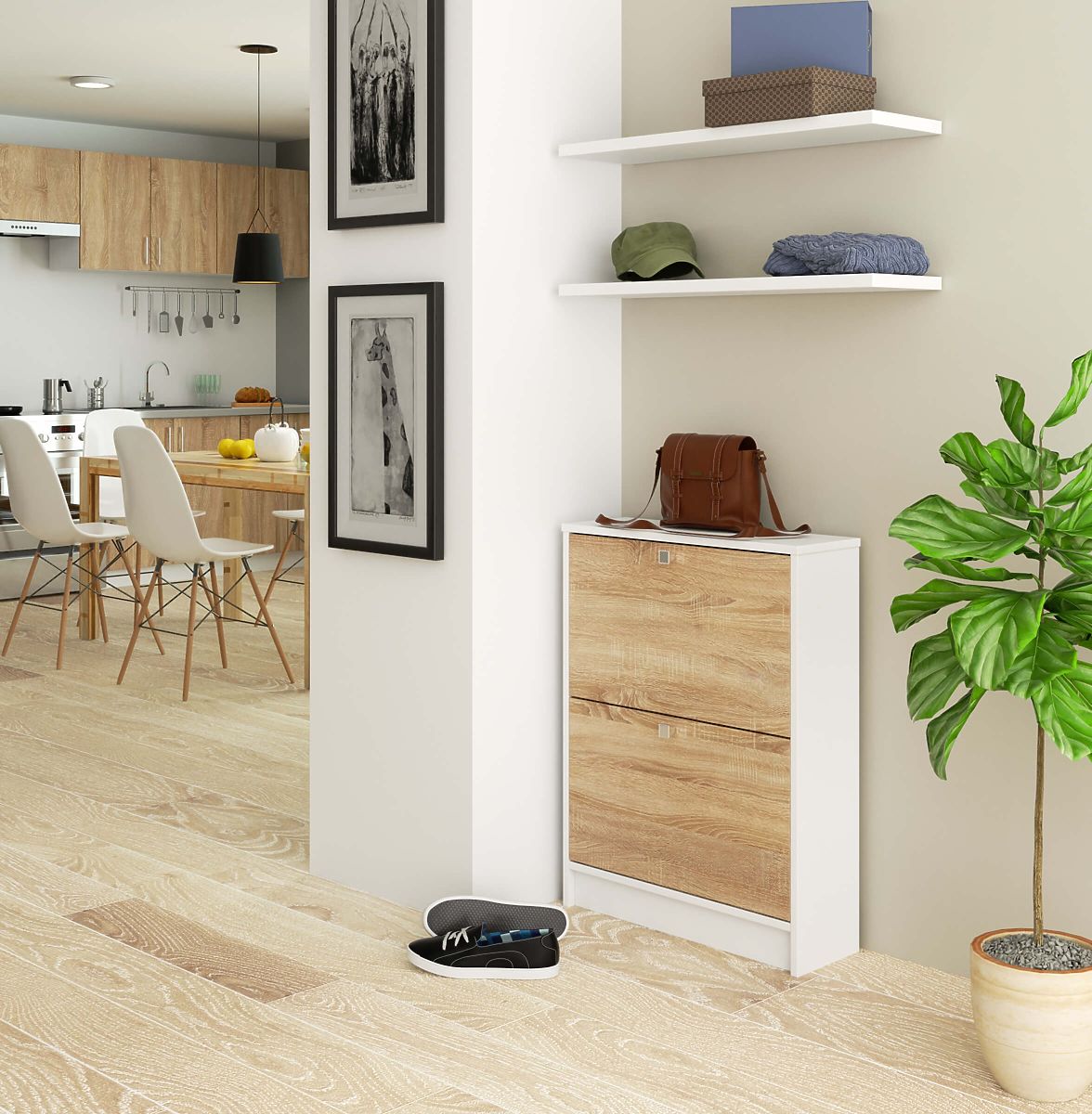 Lukahome.hr » Namještaj / Stalak za cipele / ORMAR ZA CIPELE 2 S PREKLOPNIM VRATIMA BIJELI / HRAST SONOMA