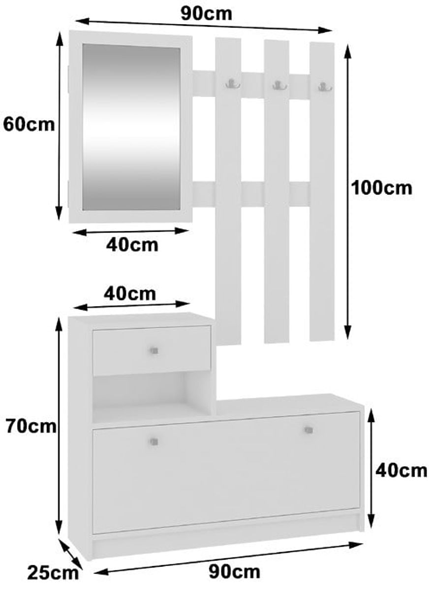 Tražite li ukusno uređen set namještaja za predsoblje? Želite li da mali prostor bude dobro iskorišten? Ako je tako, onda ste na pravom mjestu. Namještaj za predsoblje s vješalicom i ormarićem za cipele je neophodan u svakom stanu ili kući. Bijeli set za predsoblje se vrlo dobro kombinira s bojama. Ljudi se sve češće vraćaju tradicionalnim bojama i cijene minimalizam. Ormarić za cipele je vrlo prostran i zanimljivo dizajniran, jer iznad njega se nalazi niša i mala ladica u koju možete spremiti ključeve ili druge potrebne sitnice. Praktičan dodatak vješalici je ogledalo. Svaka osoba koja izlazi iz kuće želi provjeriti kako izgleda. Namještaj je izrađen od laminirane ploče koja je otporna na habanje. To je vrlo važna osobina, jer djeca često bacaju teške torbe na ormarić po dolasku kući i dobro je da je zaštićen od oštećenja. Predstavljeni set namještaja za predsoblje je stoga funkcionalan i estetski obrađen.